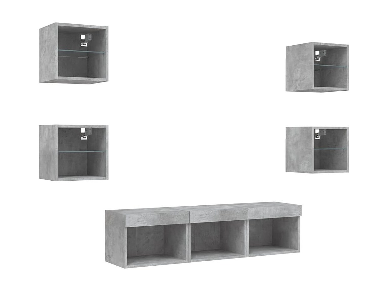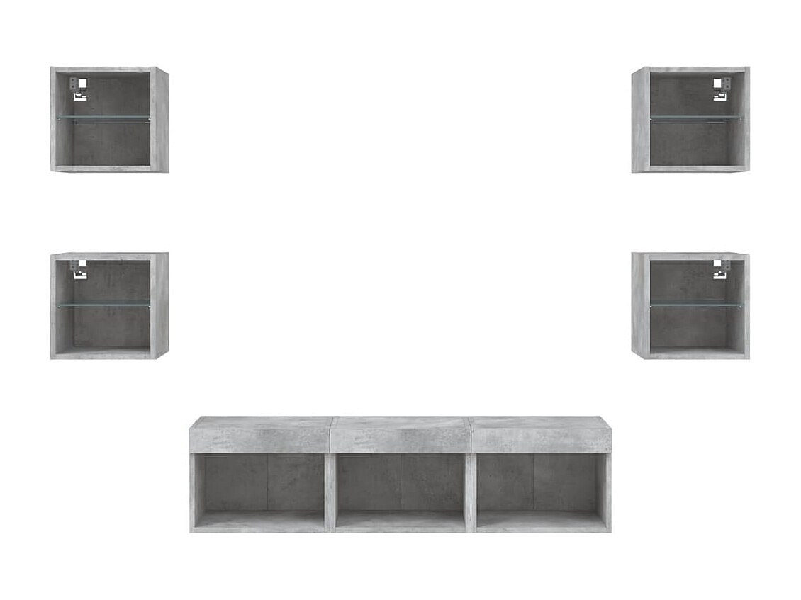 Coolgreany 7-delige Tv-wandmeubelset met LED bewerkt hout betongrijs
