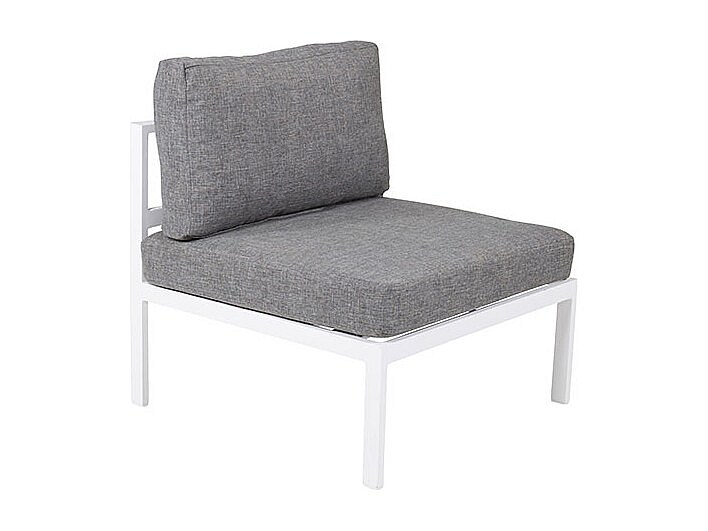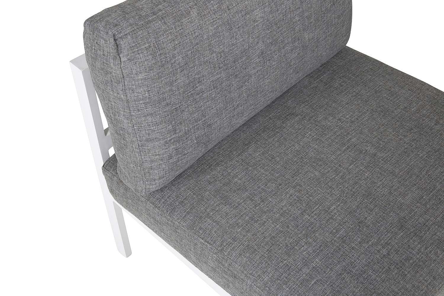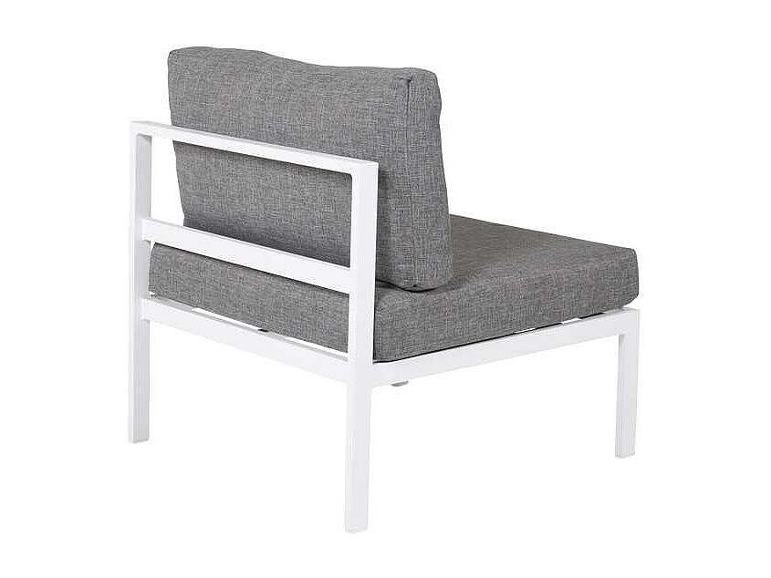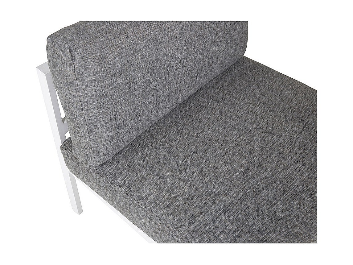 Tuinbank met armleuning en witte kussens van massief grenenhout