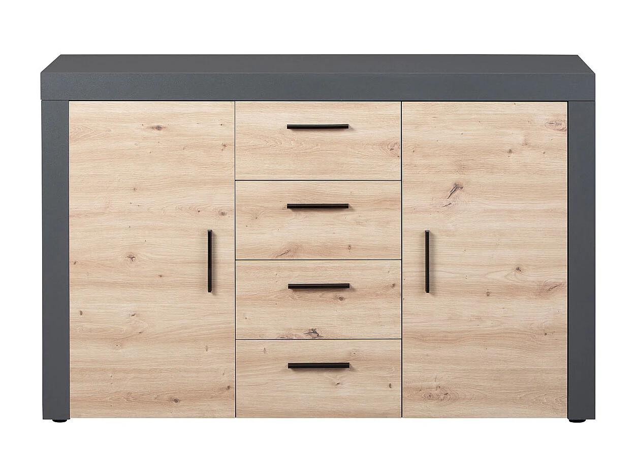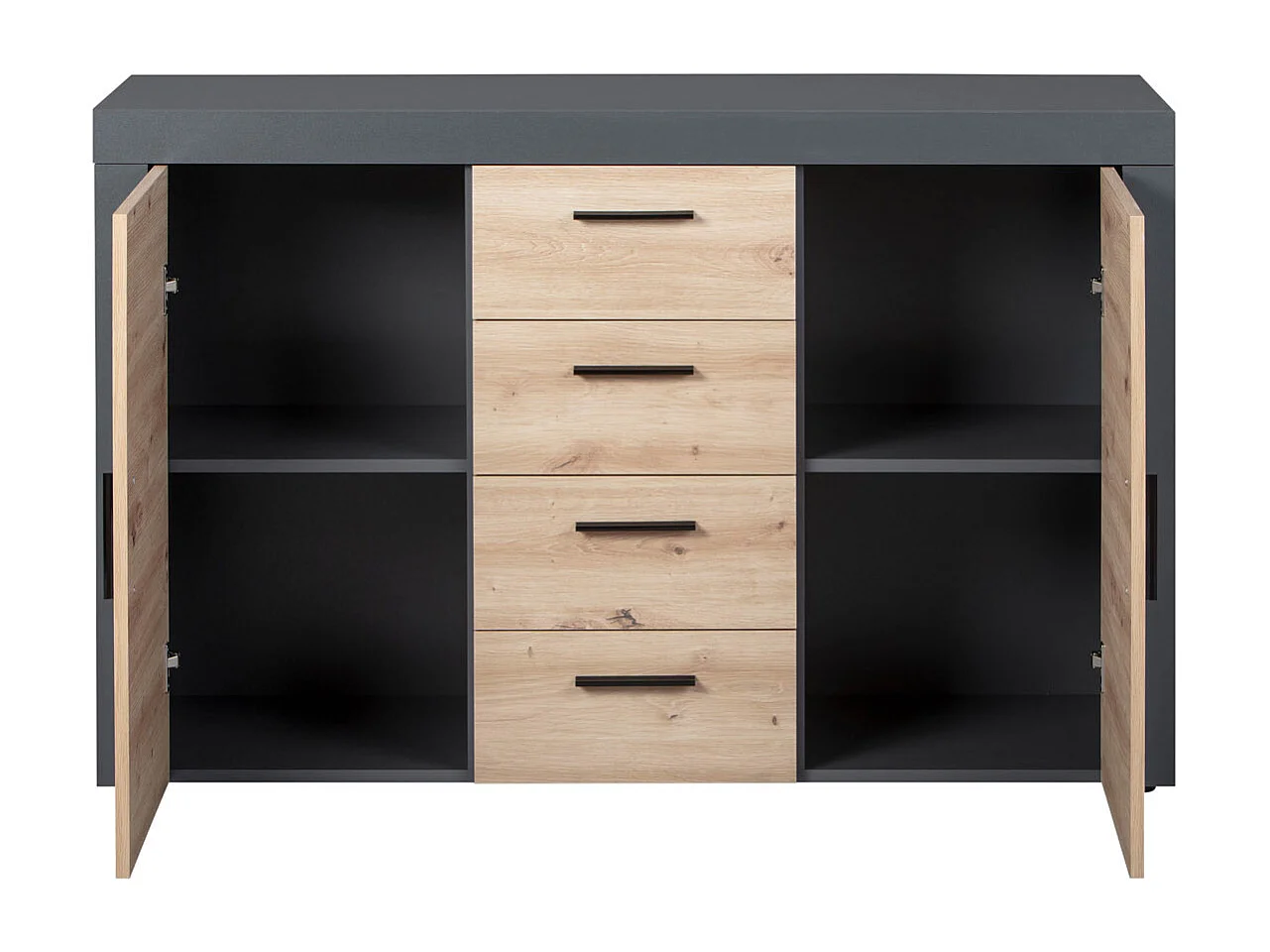 Corbeto2T4S kommode 4 laden, 2 deurenantraciet, eiken Artisanale decor.