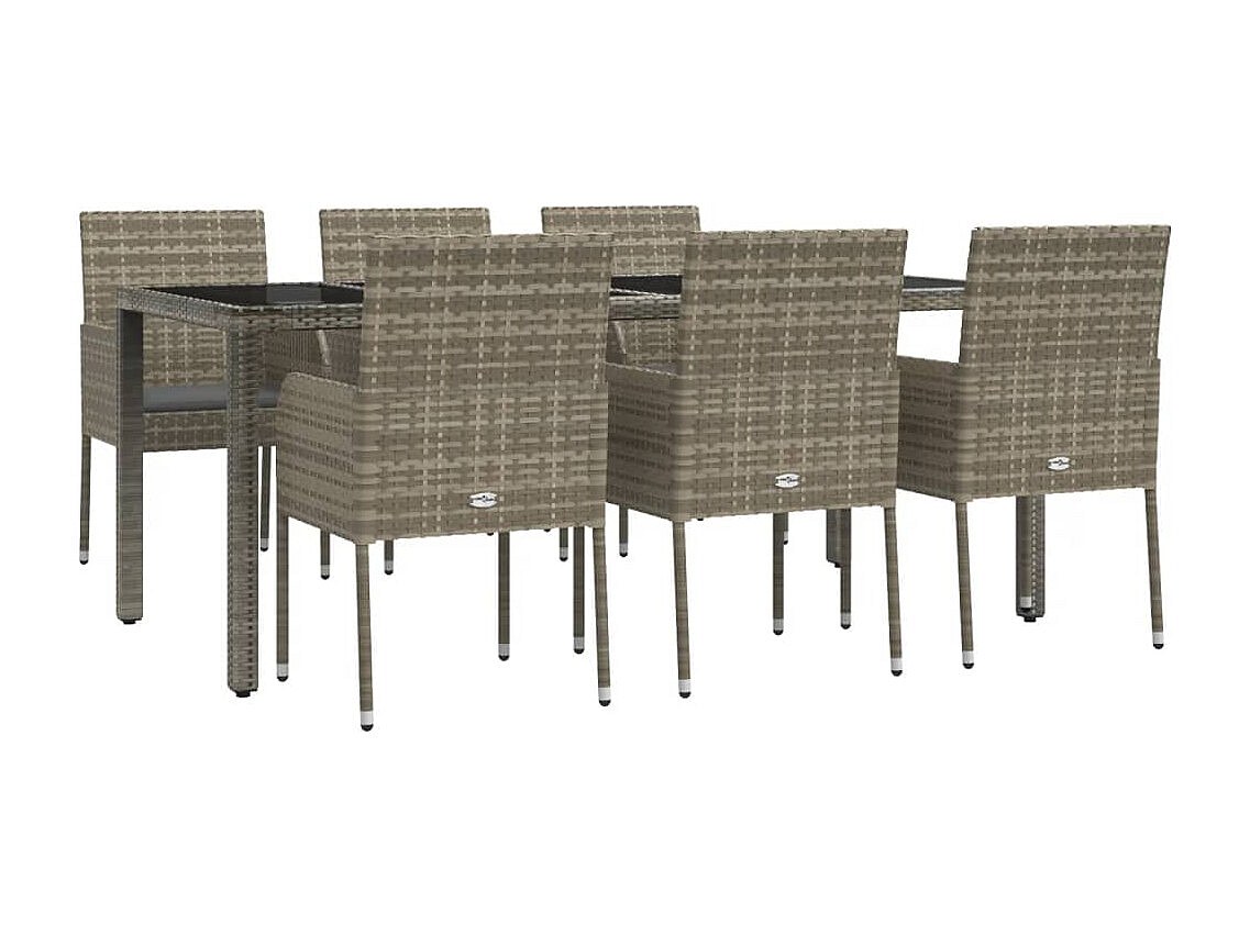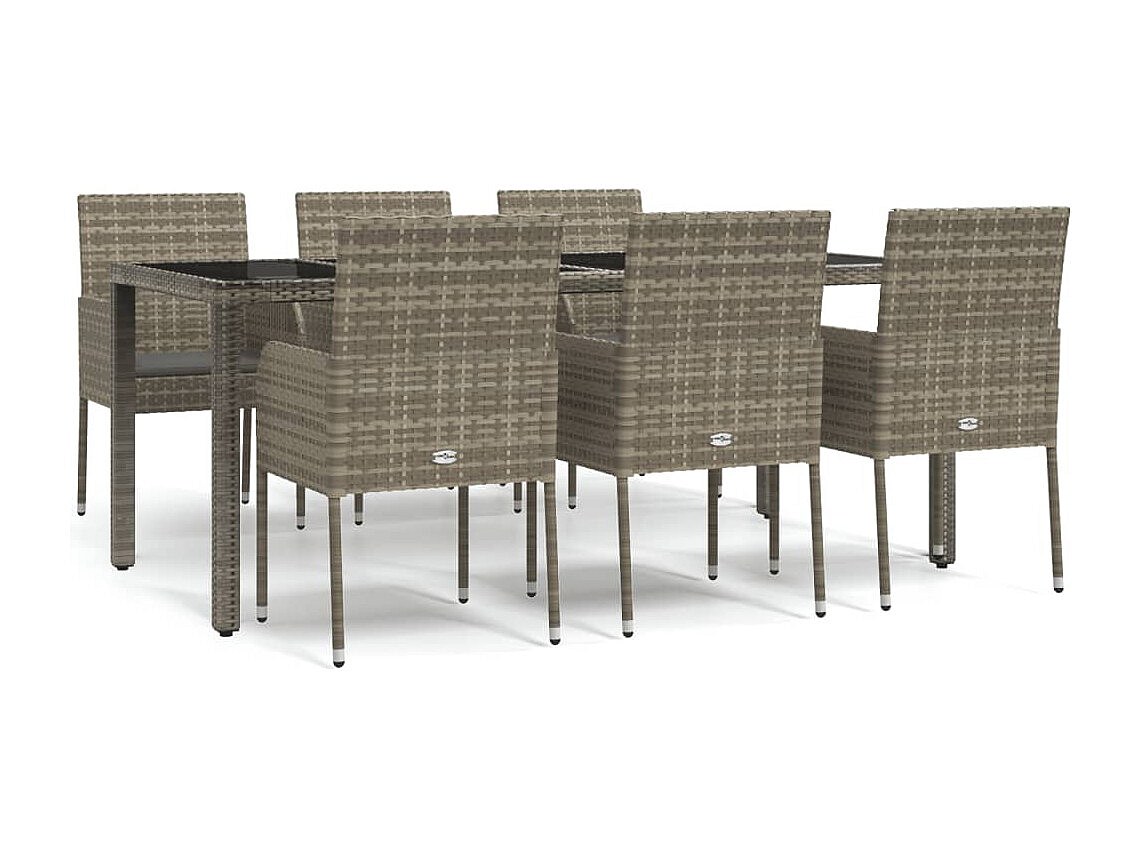 Tyron 7-delige Tuinset met kussens poly rattan grijs