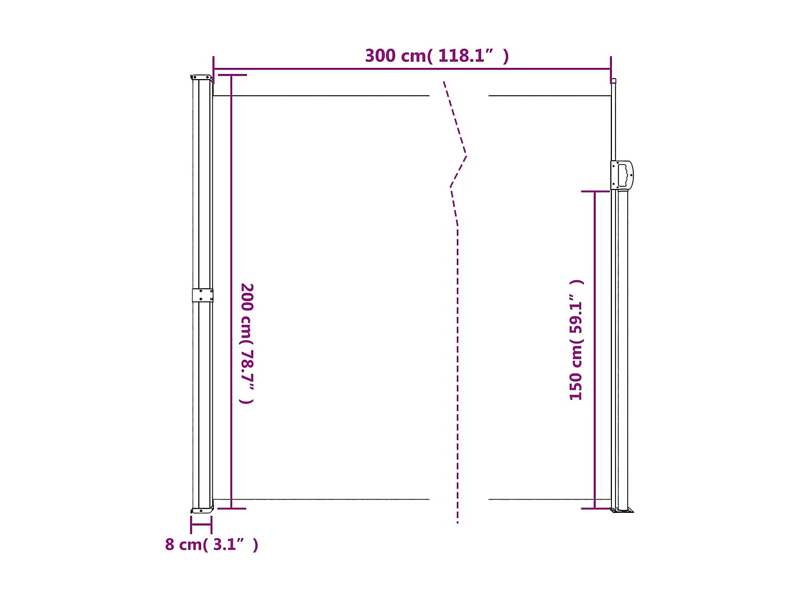 Uitschuifbaar balkonscherm met UV- en waterbestendig doek en fluweel, aluminium frame, verstelbare hoek 5-35°, 3 x 2,5 m