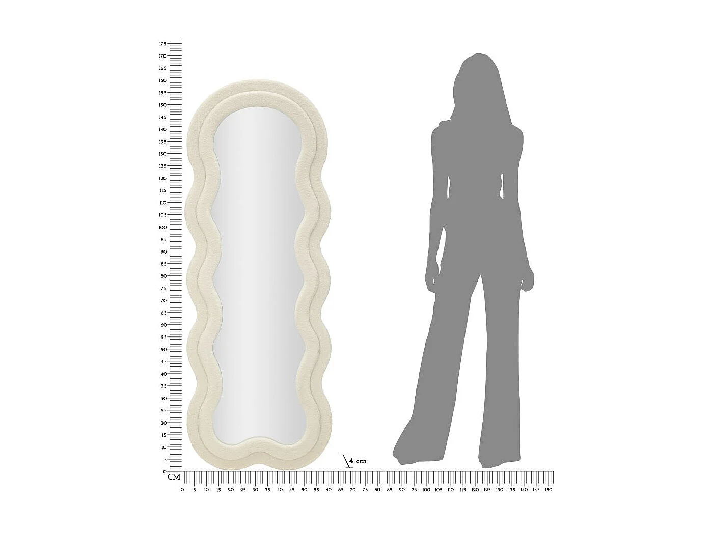 Crèmekleurige bouclé wandspiegel 60x4x160 cm