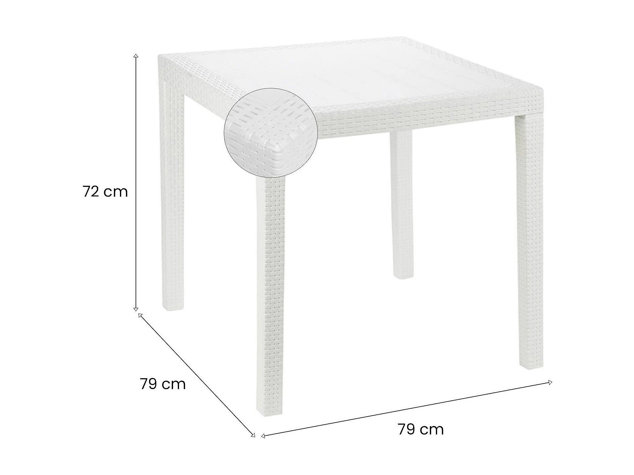 Daanan buitentafel, Vierkante tuintafel, Vaste salontafel met rotaneffect, 100% Made in Italy, 80x80h72 cm, Wit