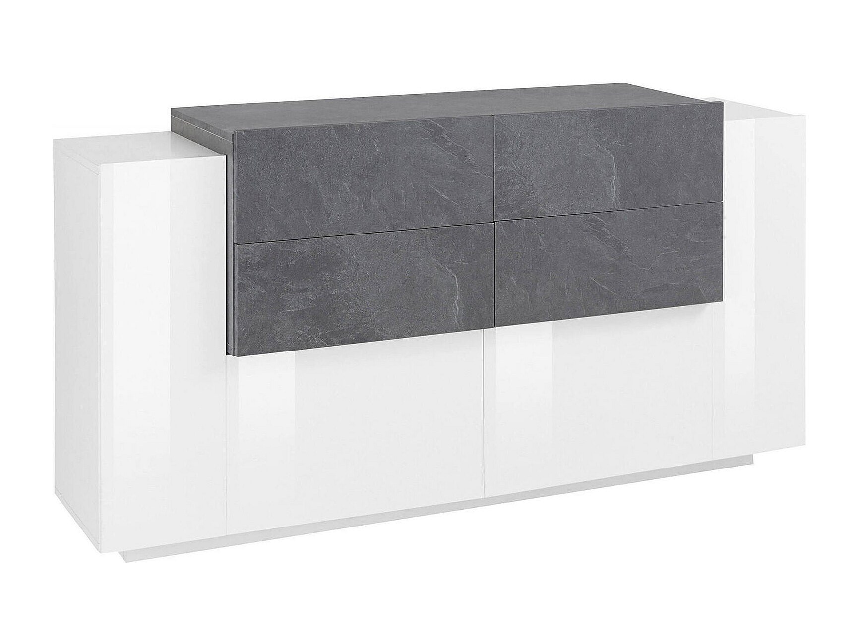 Daas dressoir, Keukendressoir met 2 deuren en 4 laden, Woonkamerbuffet, Keukendressoir, 100% Made in Italy, 160x45h86 cm, Glanzend wit en leisteen