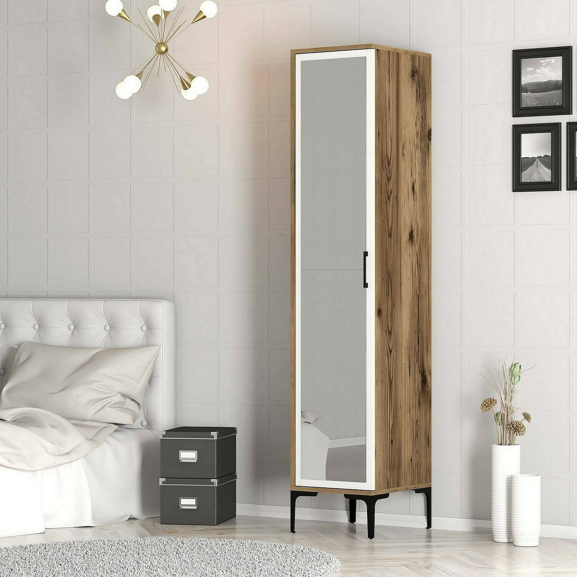 Dnuytinc multifunctionele kledingkast 1 deur, Multifunctionele kast, Schoenenkast, Schoenenkast, 40x201h48 cm, Walnoot en Wit