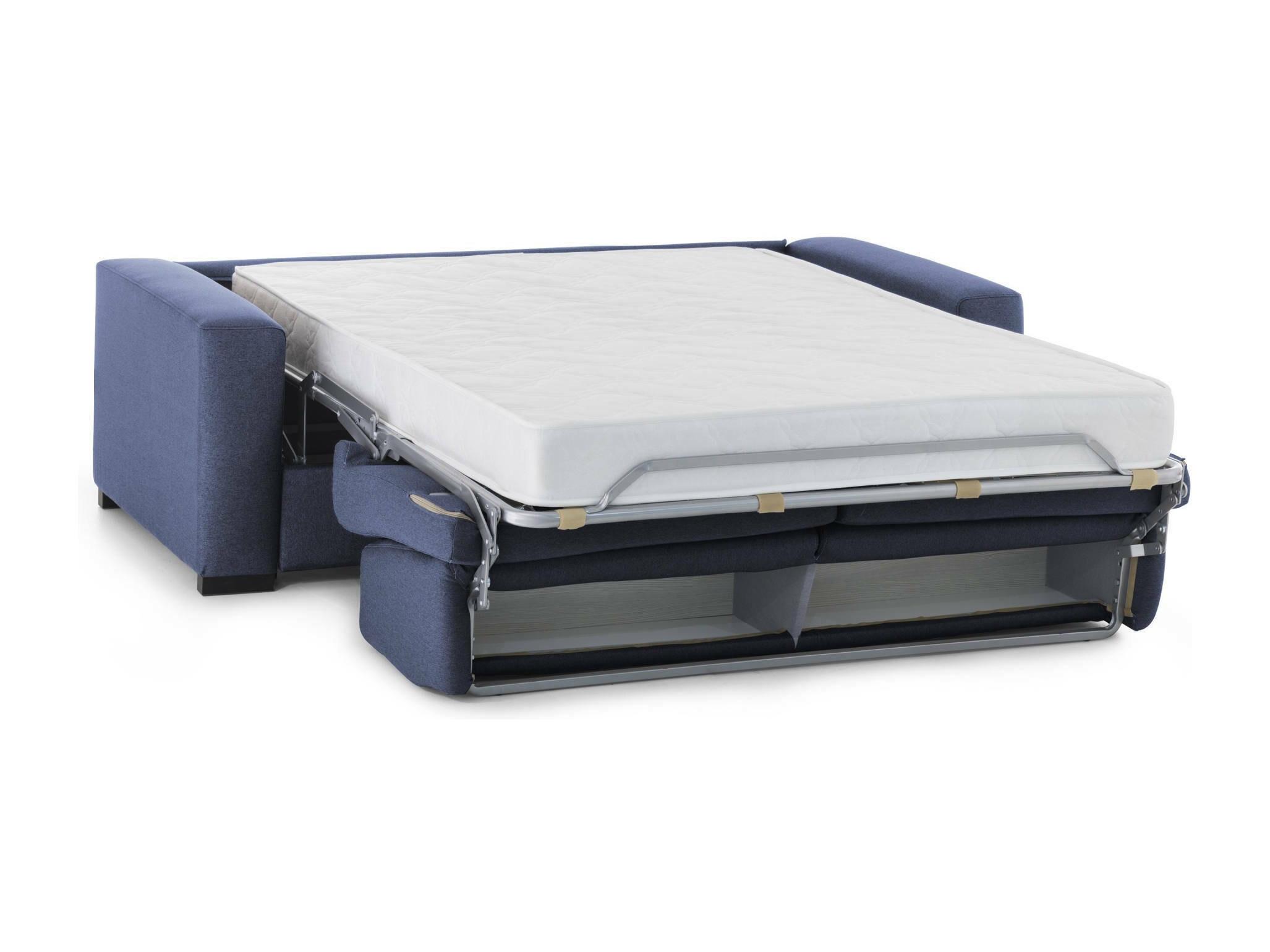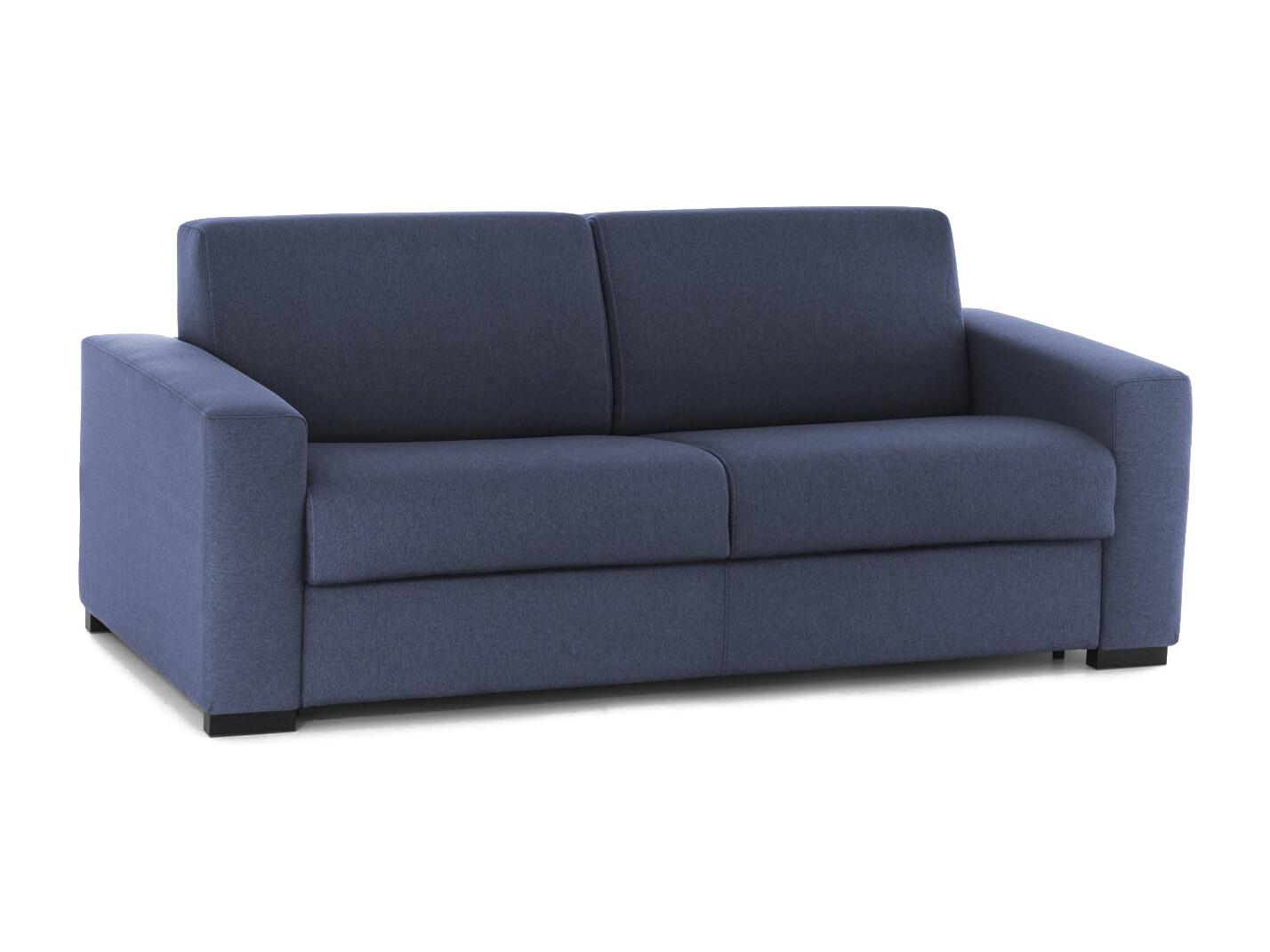 Dabakah slaapbank, 3-zitsbank, 100% Made in Italy, woonkamerbank met draaibare opening, in gewatteerde stof, met slanke armleuningen, 200x95h90 cm, Blauw