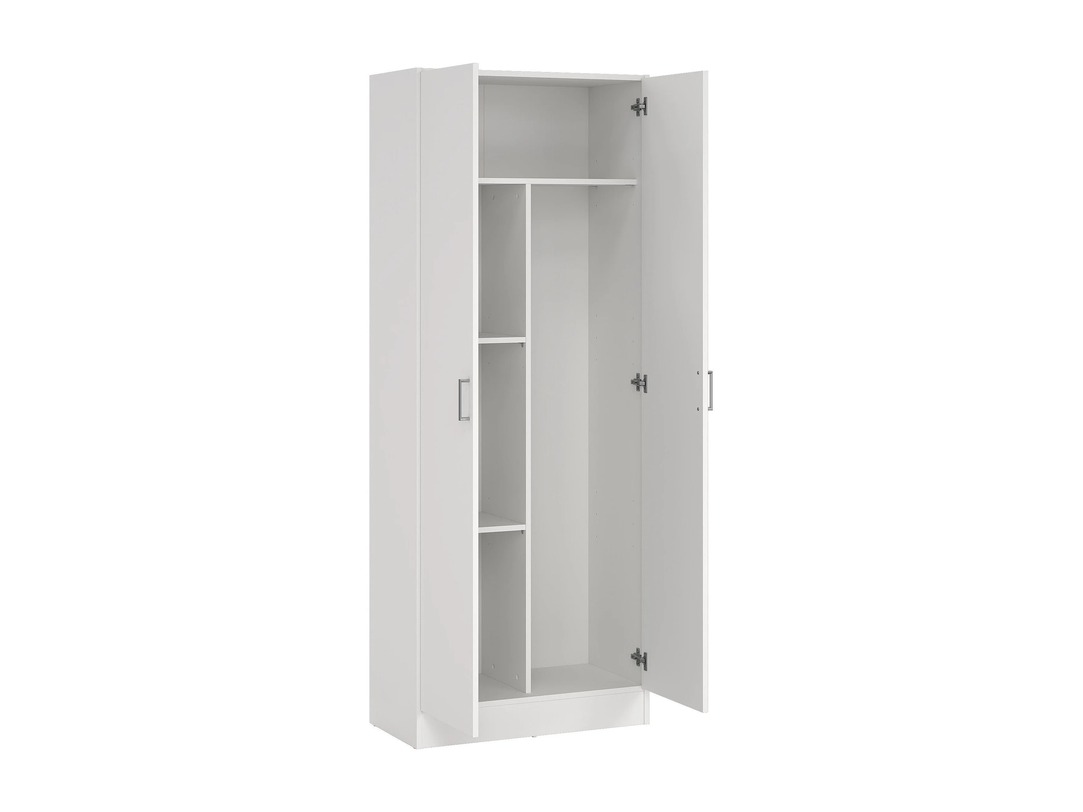 Dabaldi multifunctionele kledingkast, Bezemhouderkast met 2 deuren, Schoenenrek met planken, Bezemhouderkast, cm73x37h180 cm, Wit