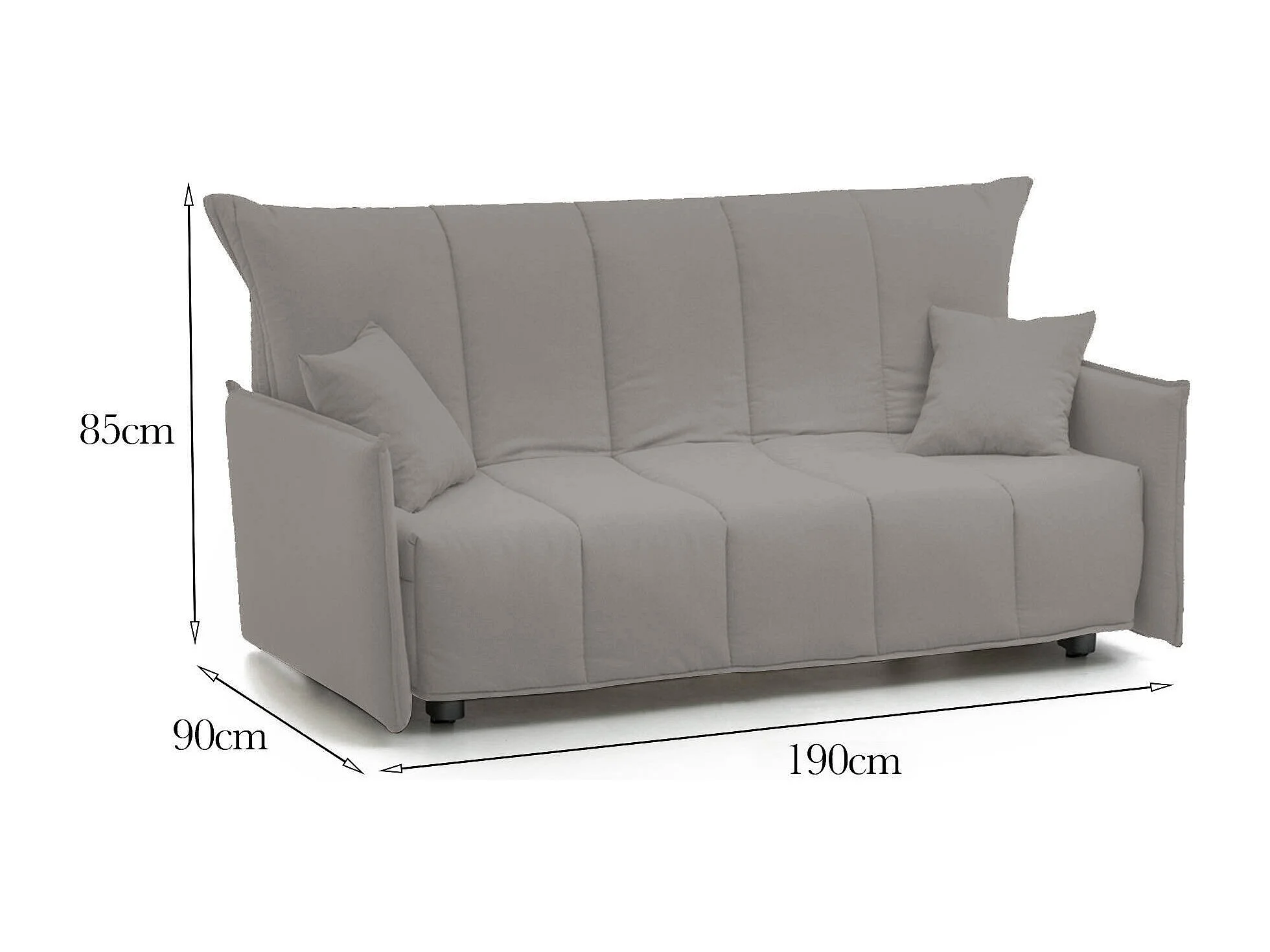 Dabarc slaapbank, 3-zitsbank, 100% Made in Italy, woonkamerbank met trolley-opening, in gewatteerde stof, met standaard armleuningen, 190x90h85 cm, grijs