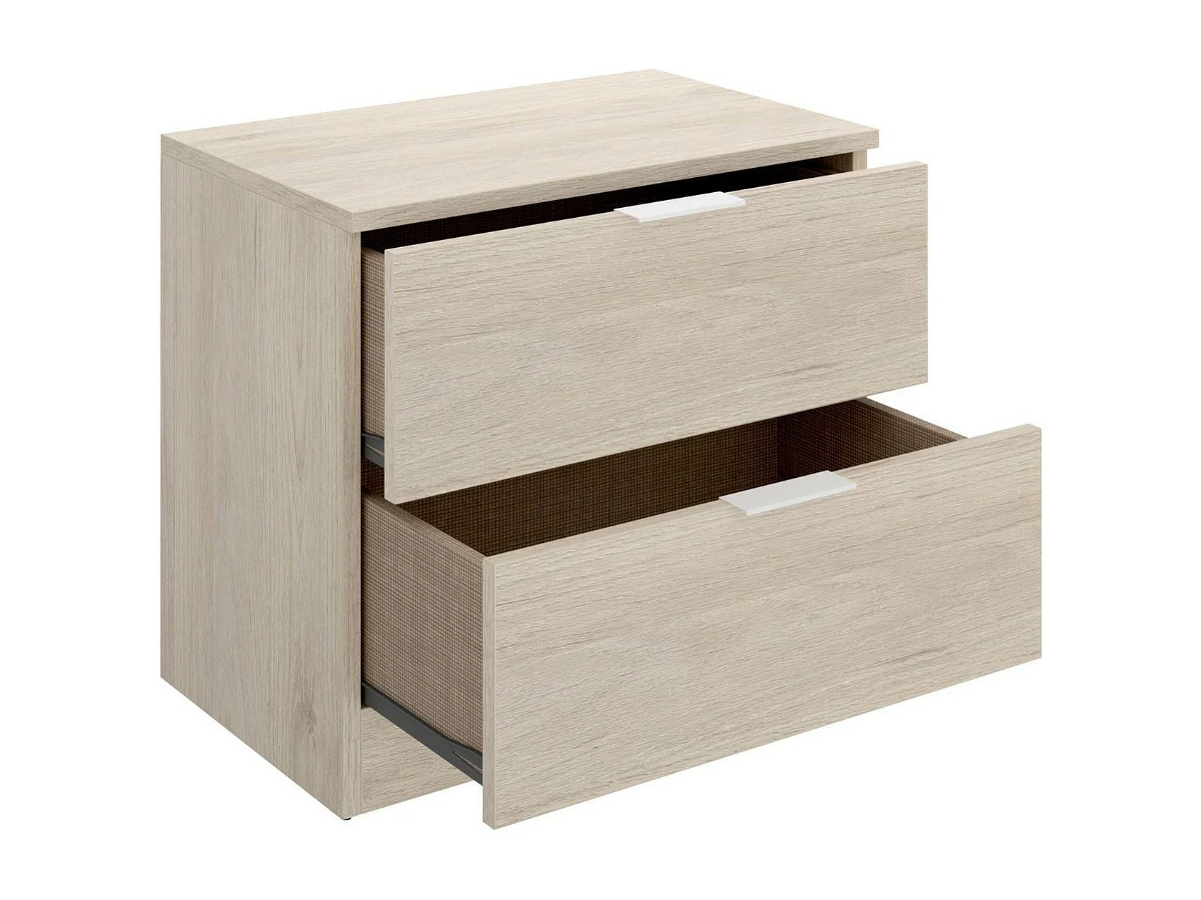 Drossitt nachtkastje, Lage ladekast, Nachtkastje, Bedplank, 40x40 h47 cm, Eiken en Wit
