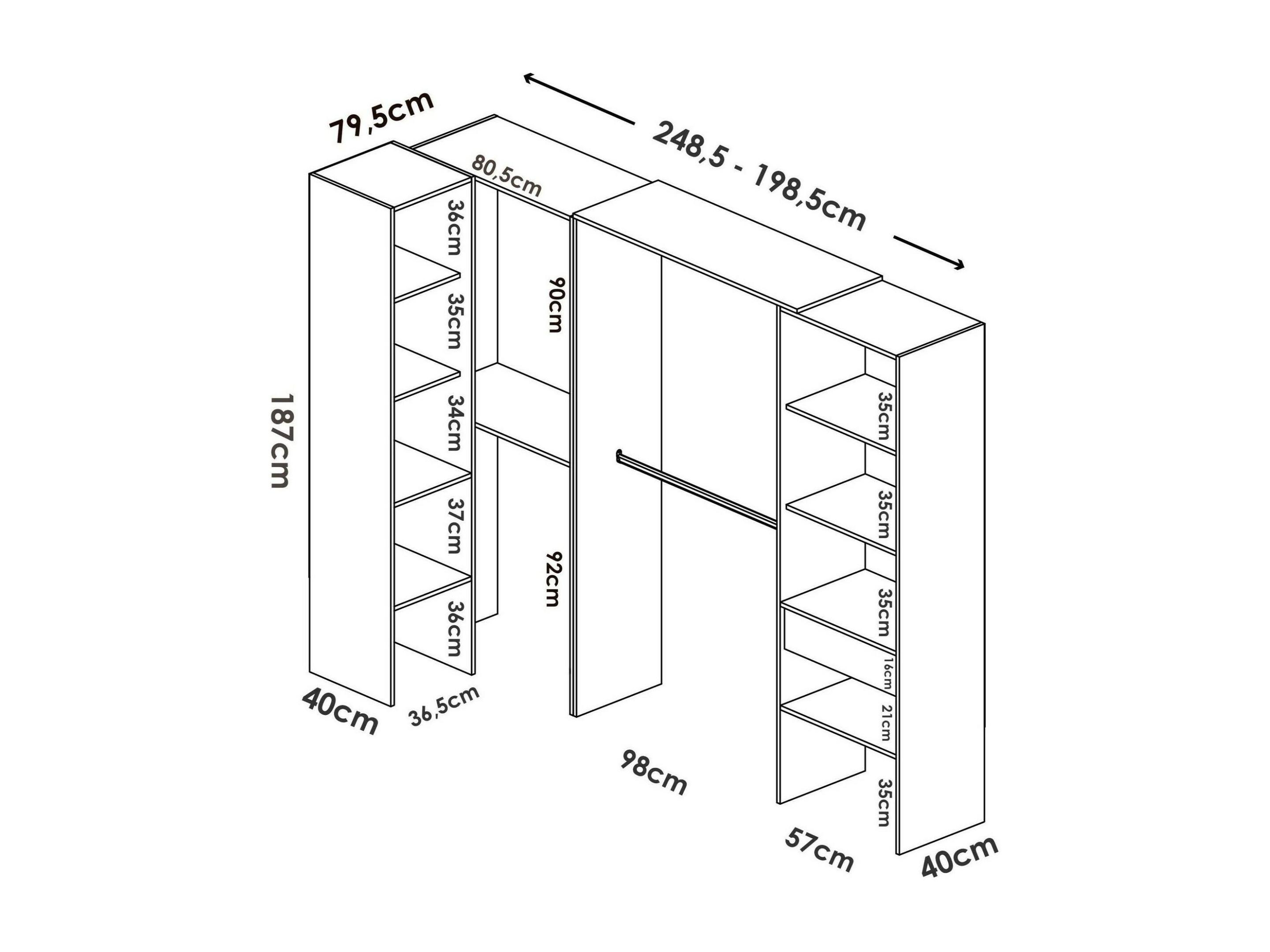GARDEROBE - Structuur voor hoekinloopkast, Open hoekkleerhanger, 248x79h187 cm, Eiken.