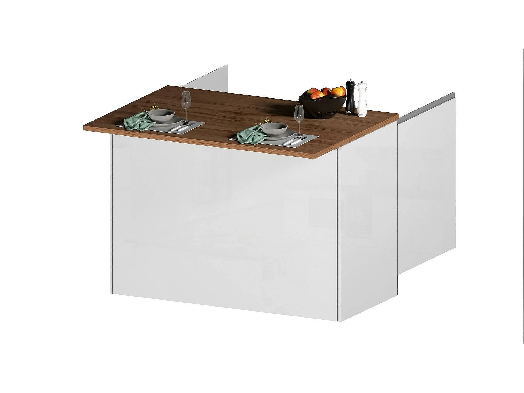 Daffaticat keukeneiland, Multifunctionele kledingkast, Keukenmeubel, Bijzettafel, 100% Made in Italy, 125x90h90 cm, Glanzend wit en eiken
