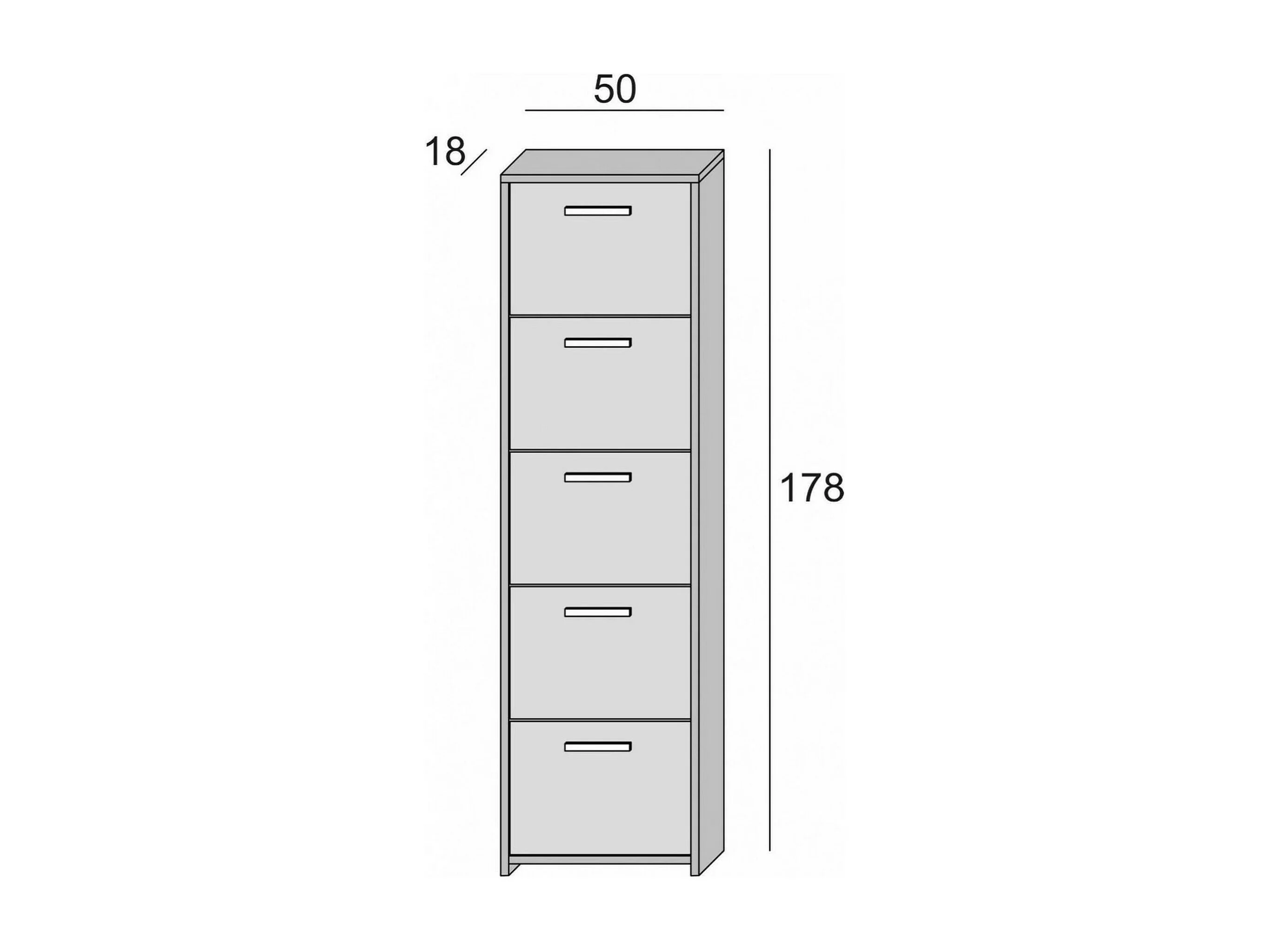 Dafne Schoenenkast 18x50x178h cm Wit, 5 Deuren, 10 Paar Schoenen, Italiaans Design