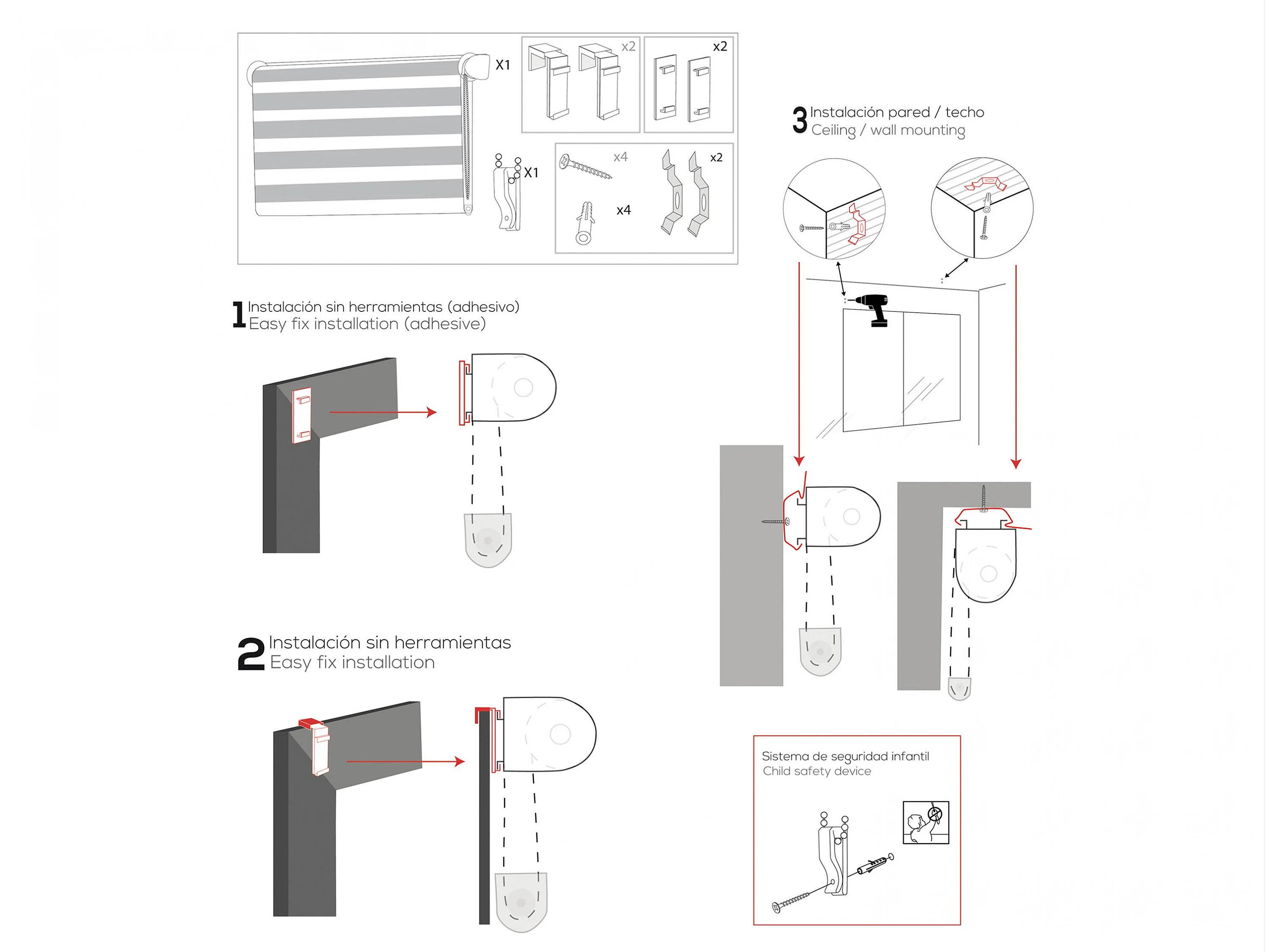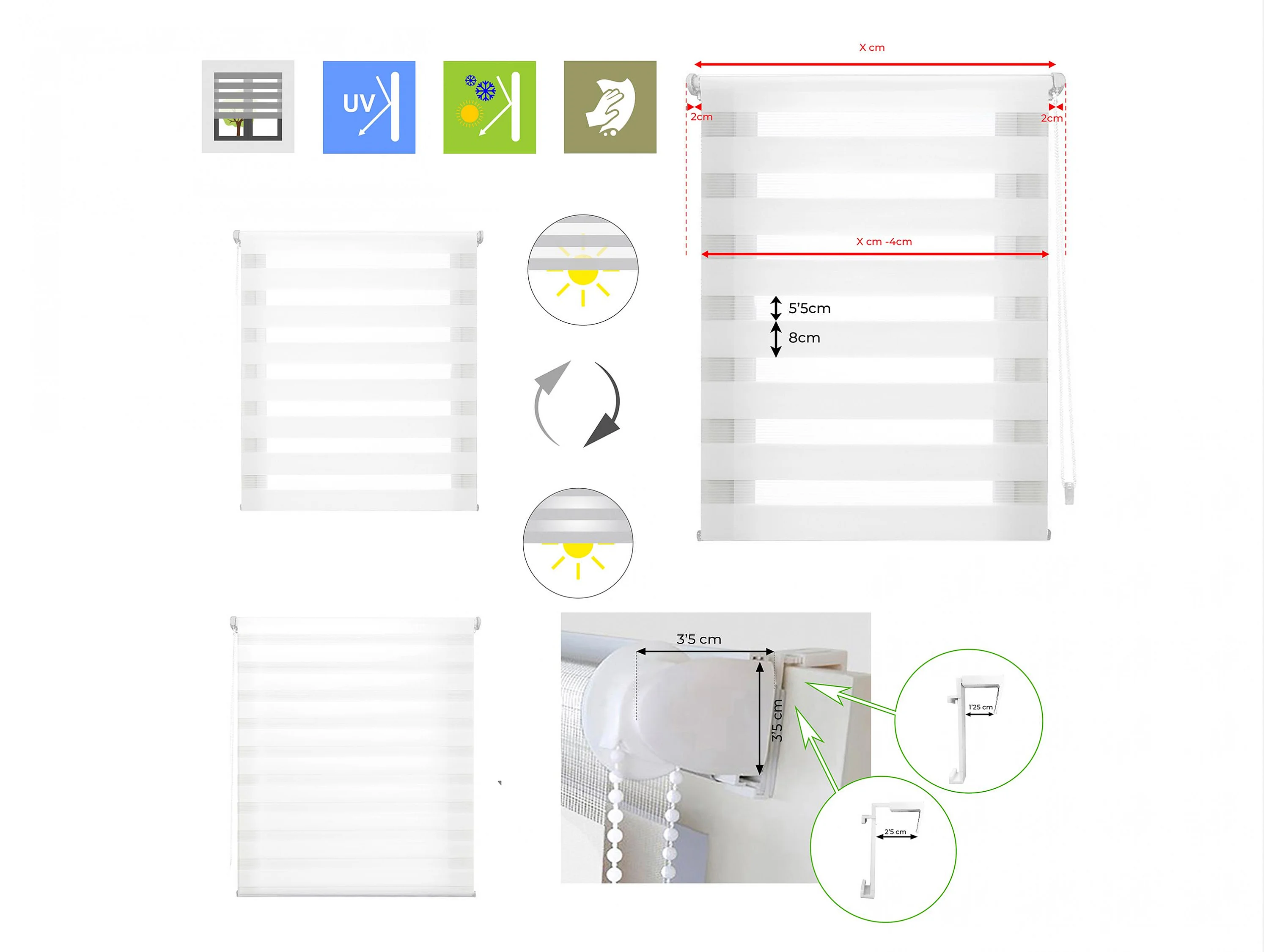 Dag- en nachtrolgordijn Eenvoudig te monteren met lijm of clips