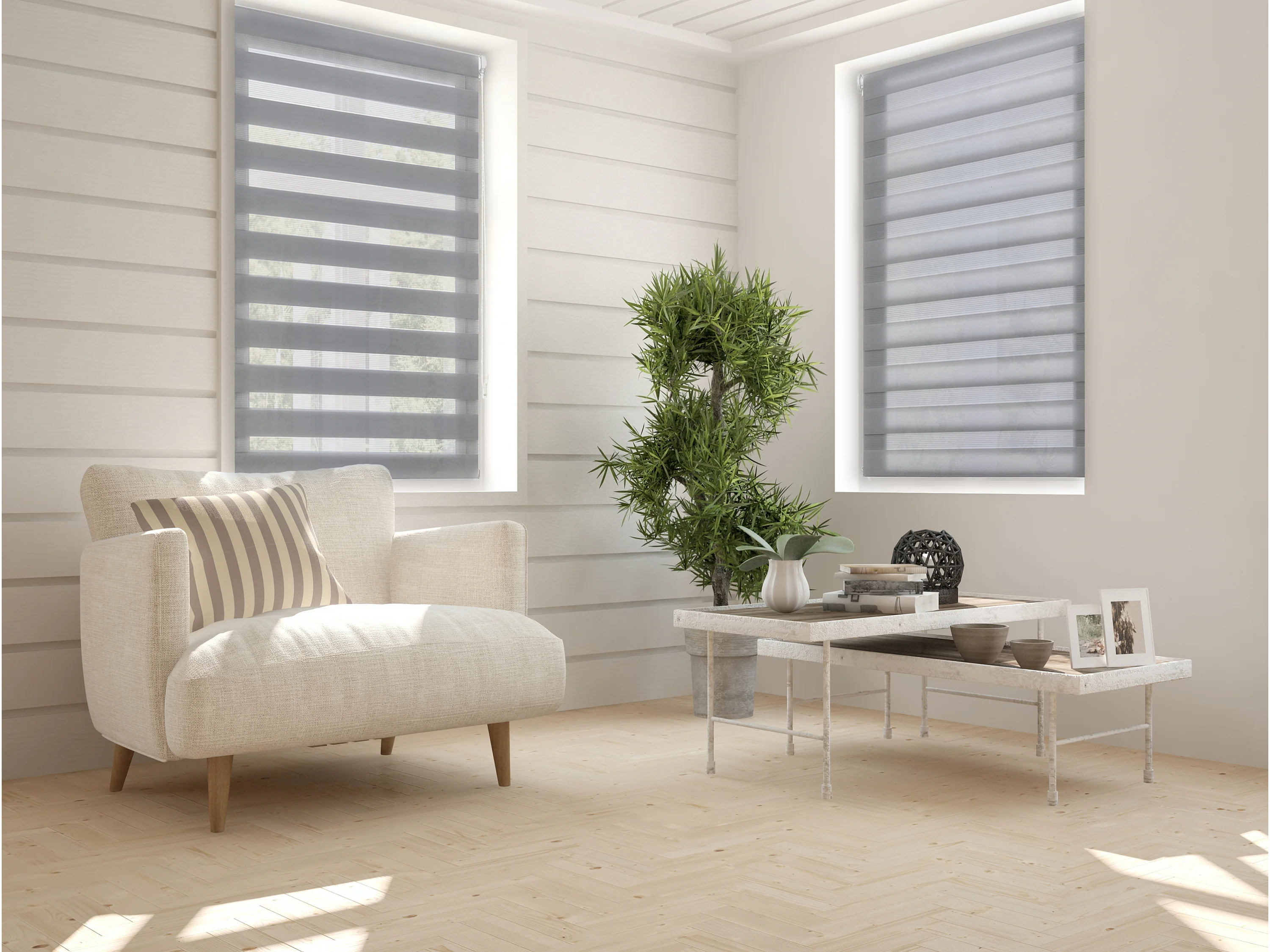 Zebra rolgordijn 120x150 cm stofbreedte 115,9 cm lichtgrijs