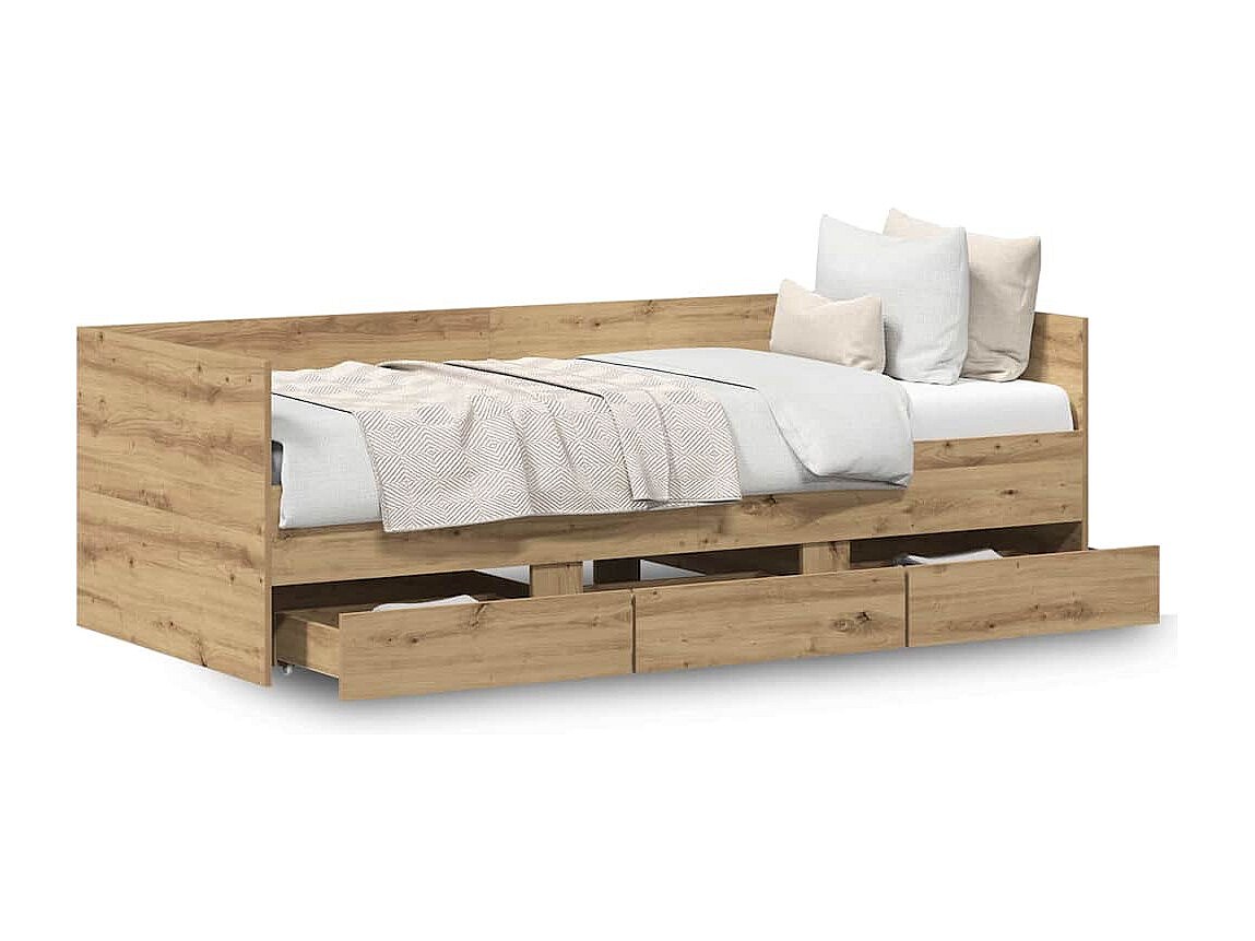 Dagbed Frame met Laden artisanaal eikenkleurig 90 x 190 cm