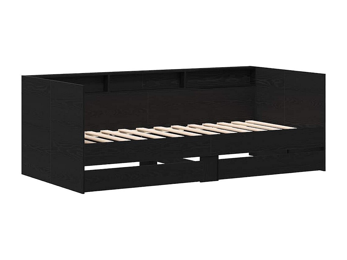 Dagbed Frame met Laden Zwart eiken 90 x 200 cm Bewerkt hout