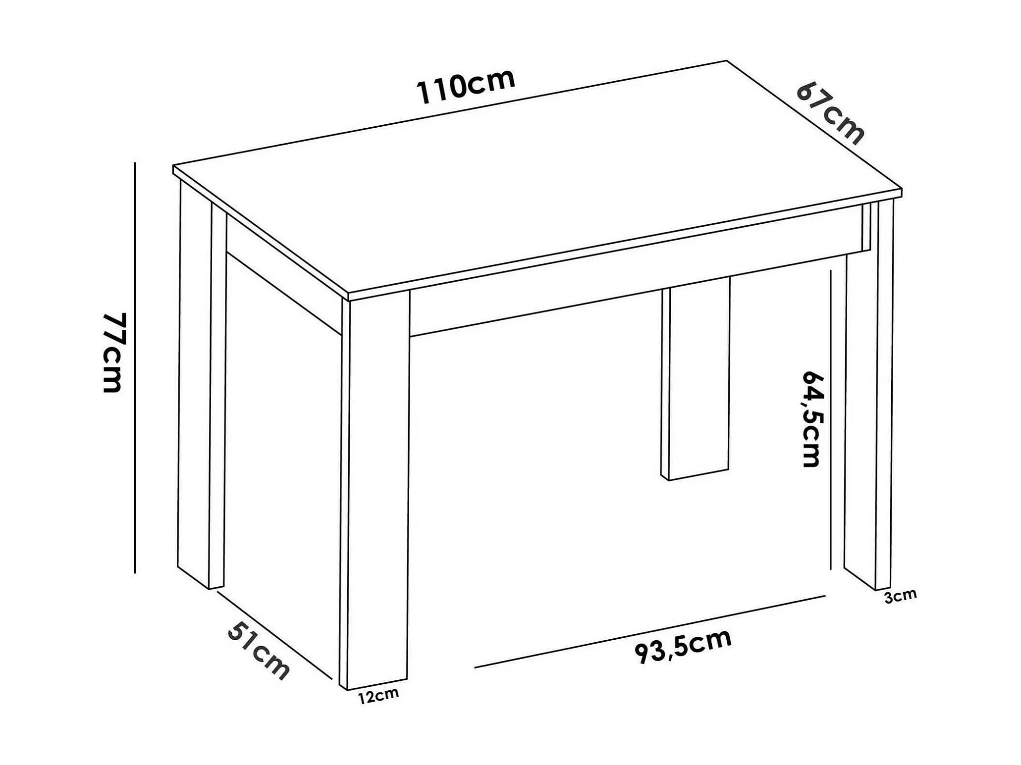 Daghe vaste tafel, Multifunctionele eettafel, Rechthoekige keuken- of eetkamertafel, 110x67h77 cm, Wit