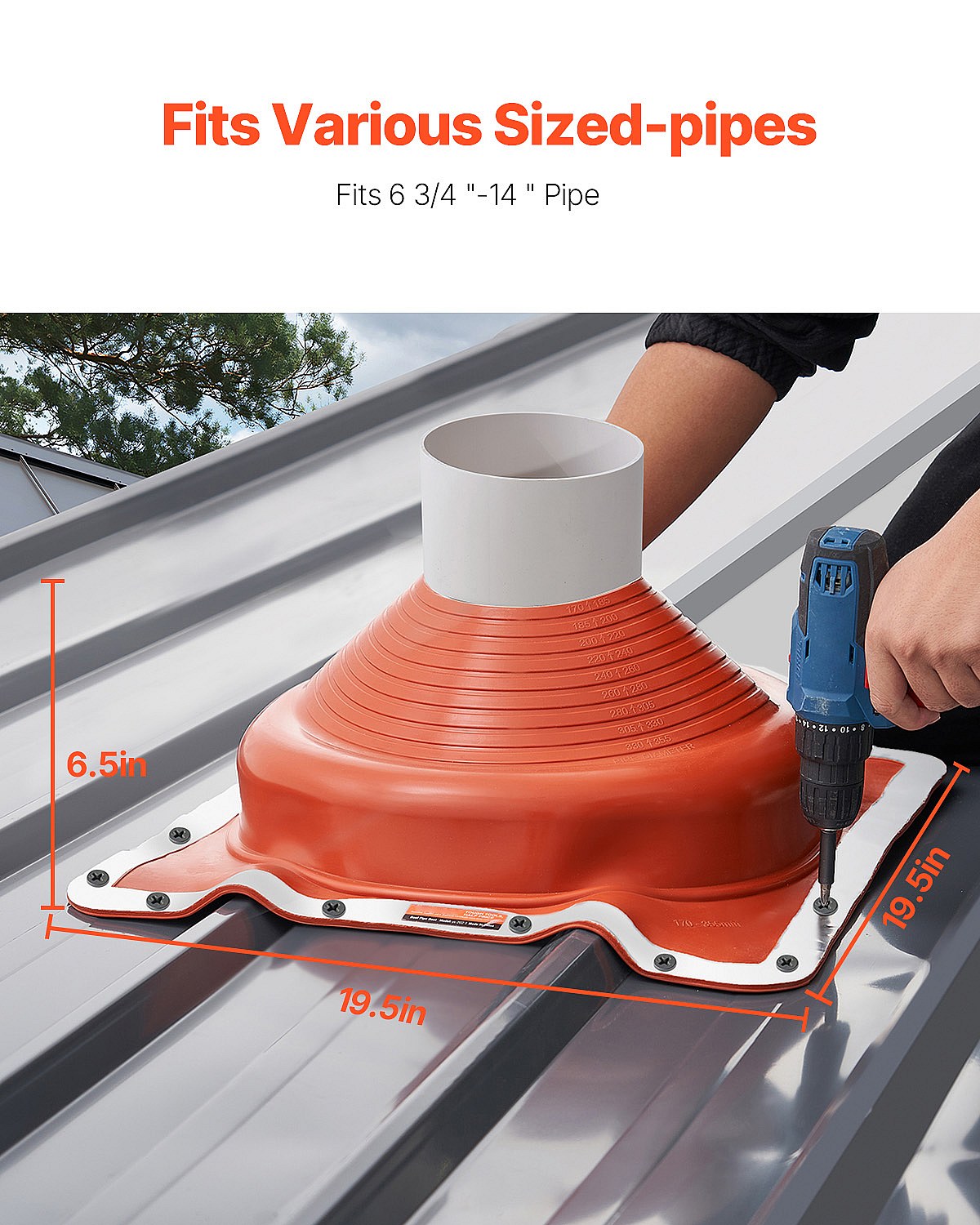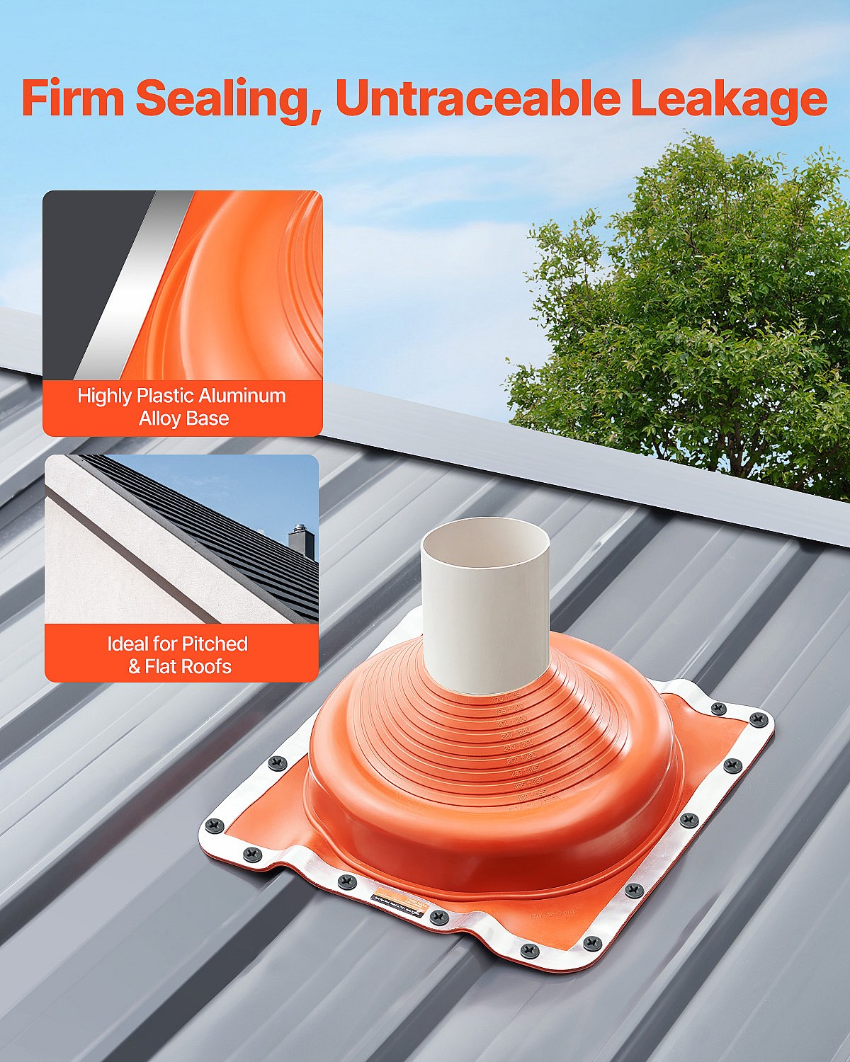 Dakdoorvoertuiten voor Pijpen SucceBuy Set van 2 voor Dakpijpen van 15 tot 28 cm, Flexibel EPDM, Bestand tegen Hoge Temperaturen, Basis van Duurzaam Metaal