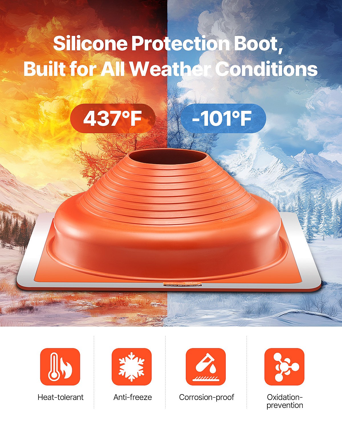 Dakafdekkingen SucceBuy Set van 2 van Metaal voor Pijpen van 16cm tot 30cm, Flexibele Siliconen Dakpijpafdekking, voor Schoorstenen, Ventilatieopeningen