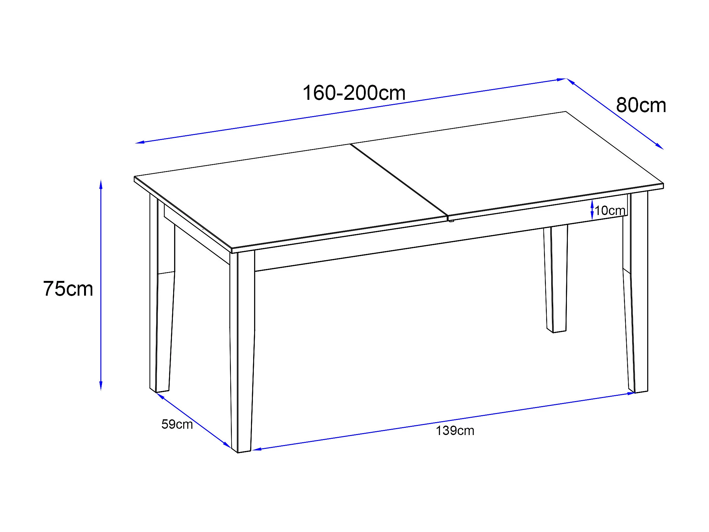 DAKOTA-Tafel 160x80 cm Wit gebeitst