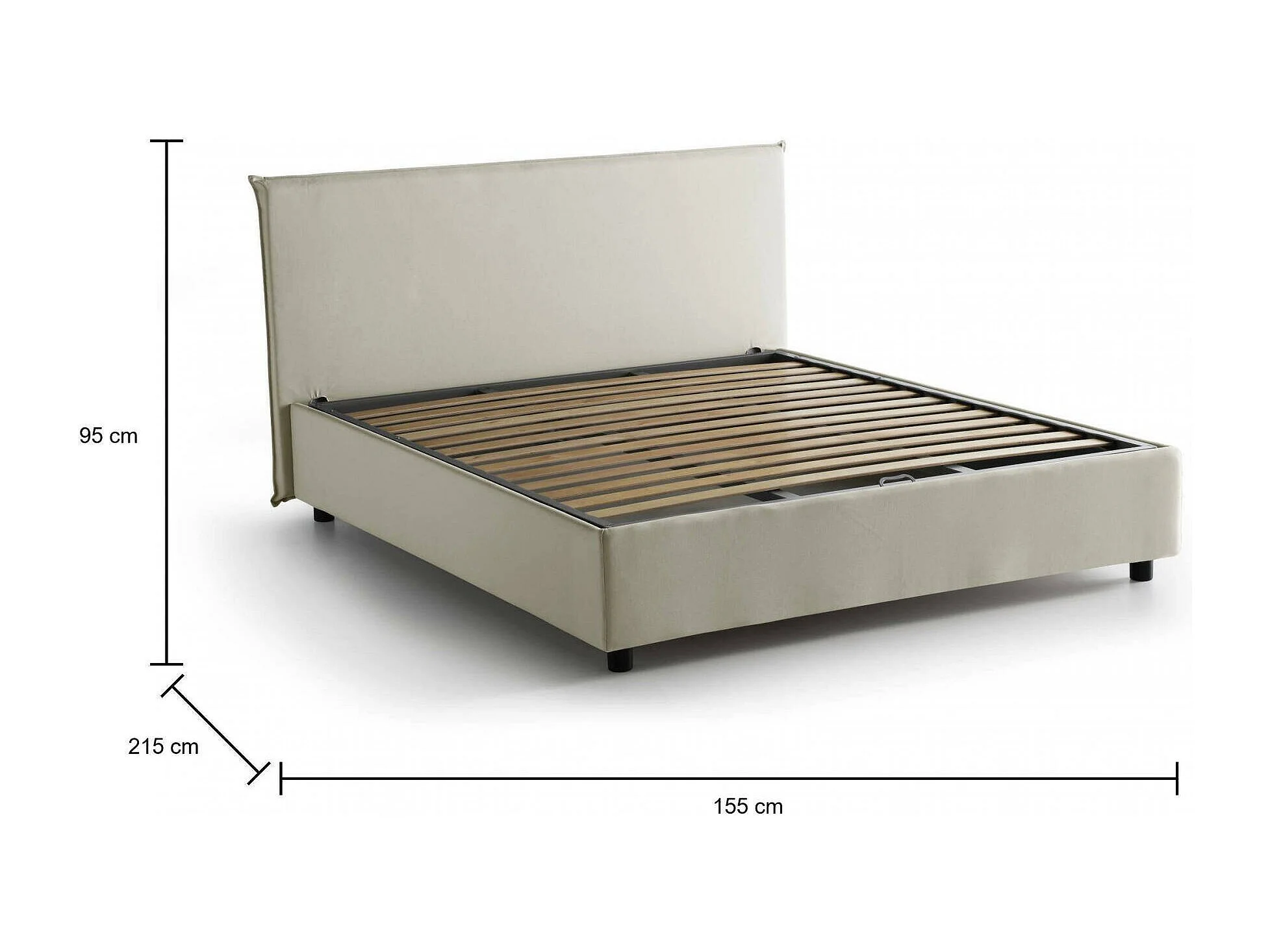 Dalfons tweepersoonsbed, Opbergbed met stoffen bekleding, 100% Made in Italy, Opening aan de voorkant, geschikt voor matras 140x200 cm, Beige