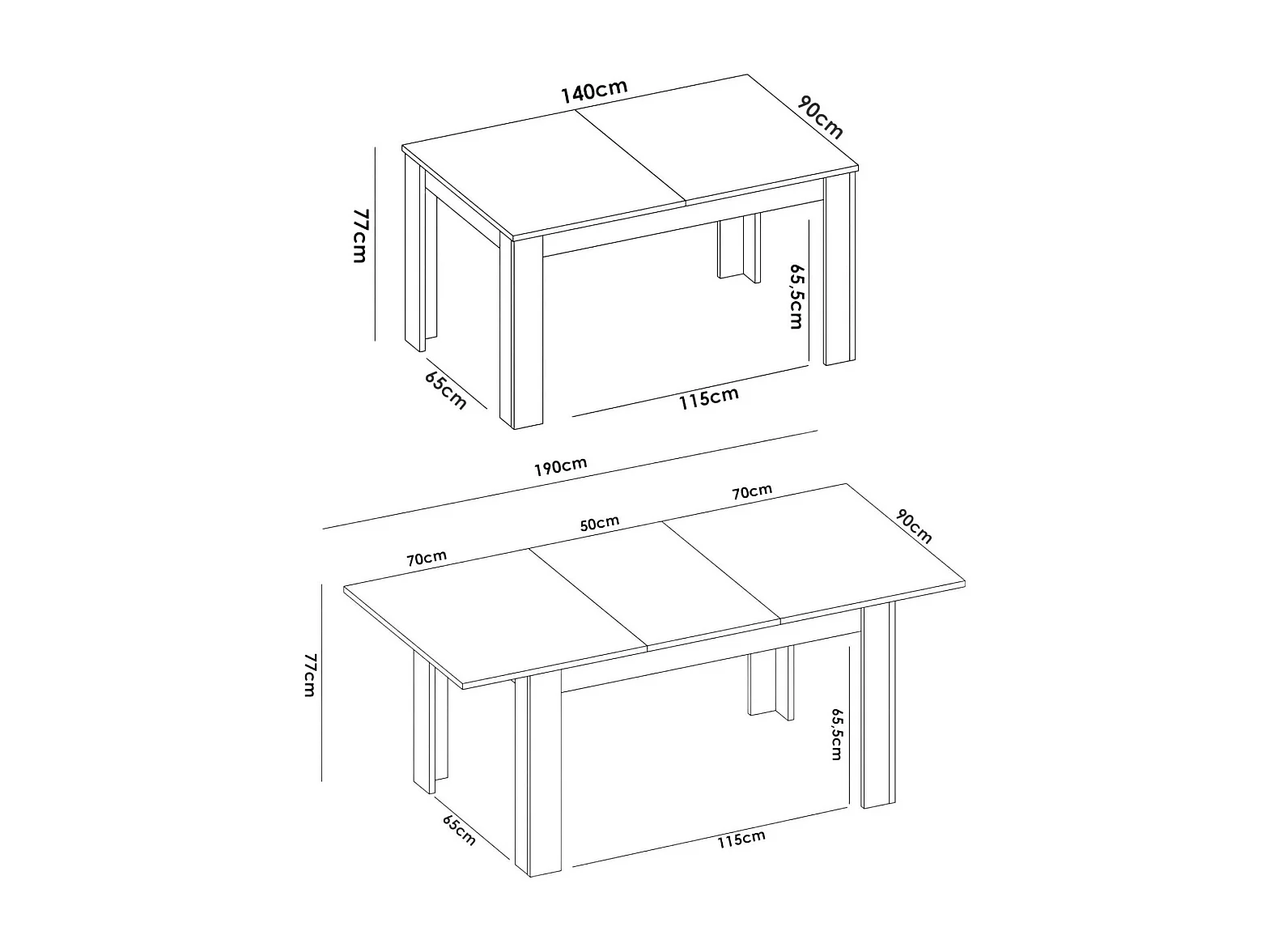 Dalice uitschuifbare tafel, Uitschuifbare console voor eetkamer, Opengaande keukentafel met verlengstuk, 140/190x90h78 cm, Eiken