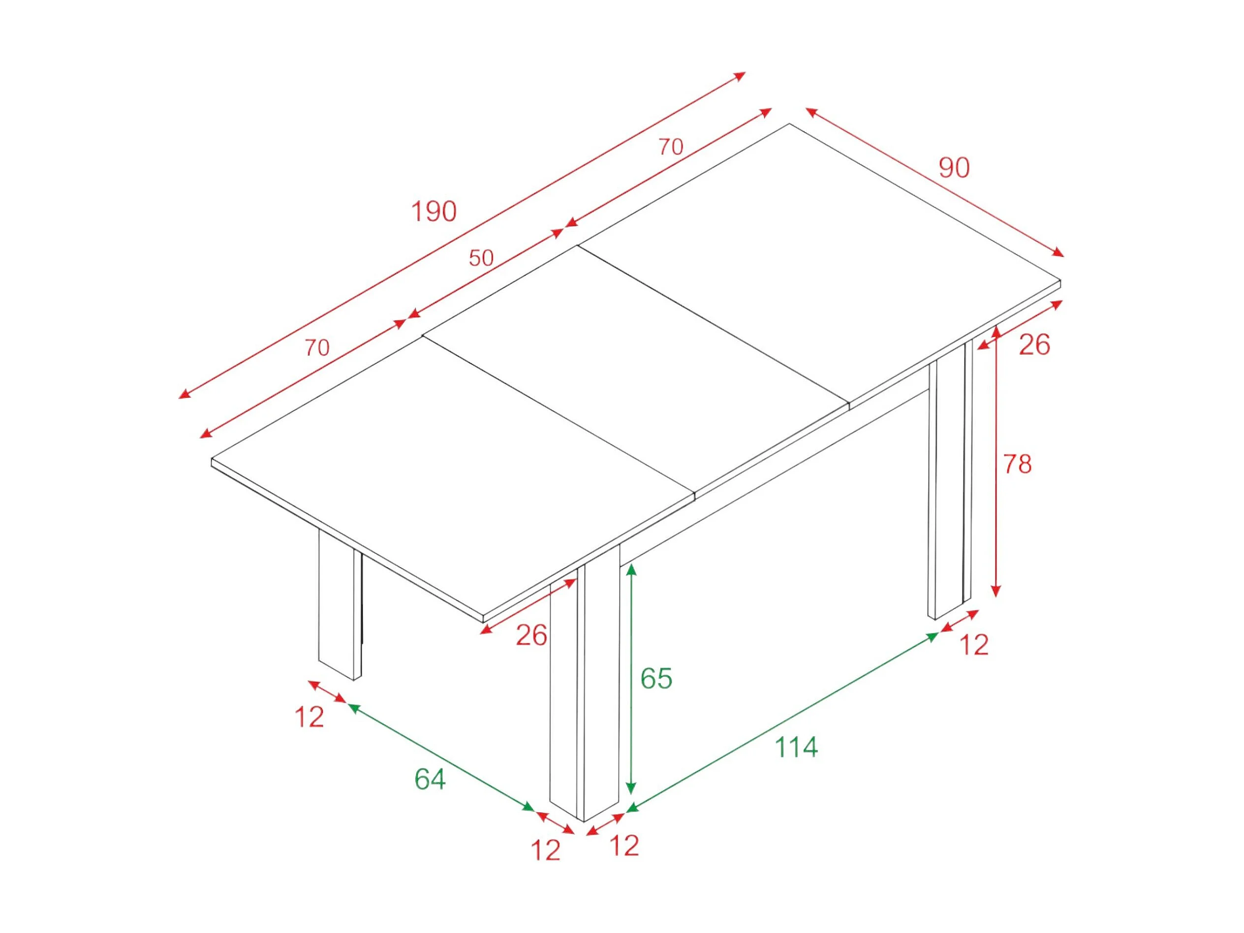 Dalice uitschuifbare tafel, Uitschuifbare console voor eetkamer, Opengaande keukentafel met verlengstuk, 140/190x90h78 cm, Wit