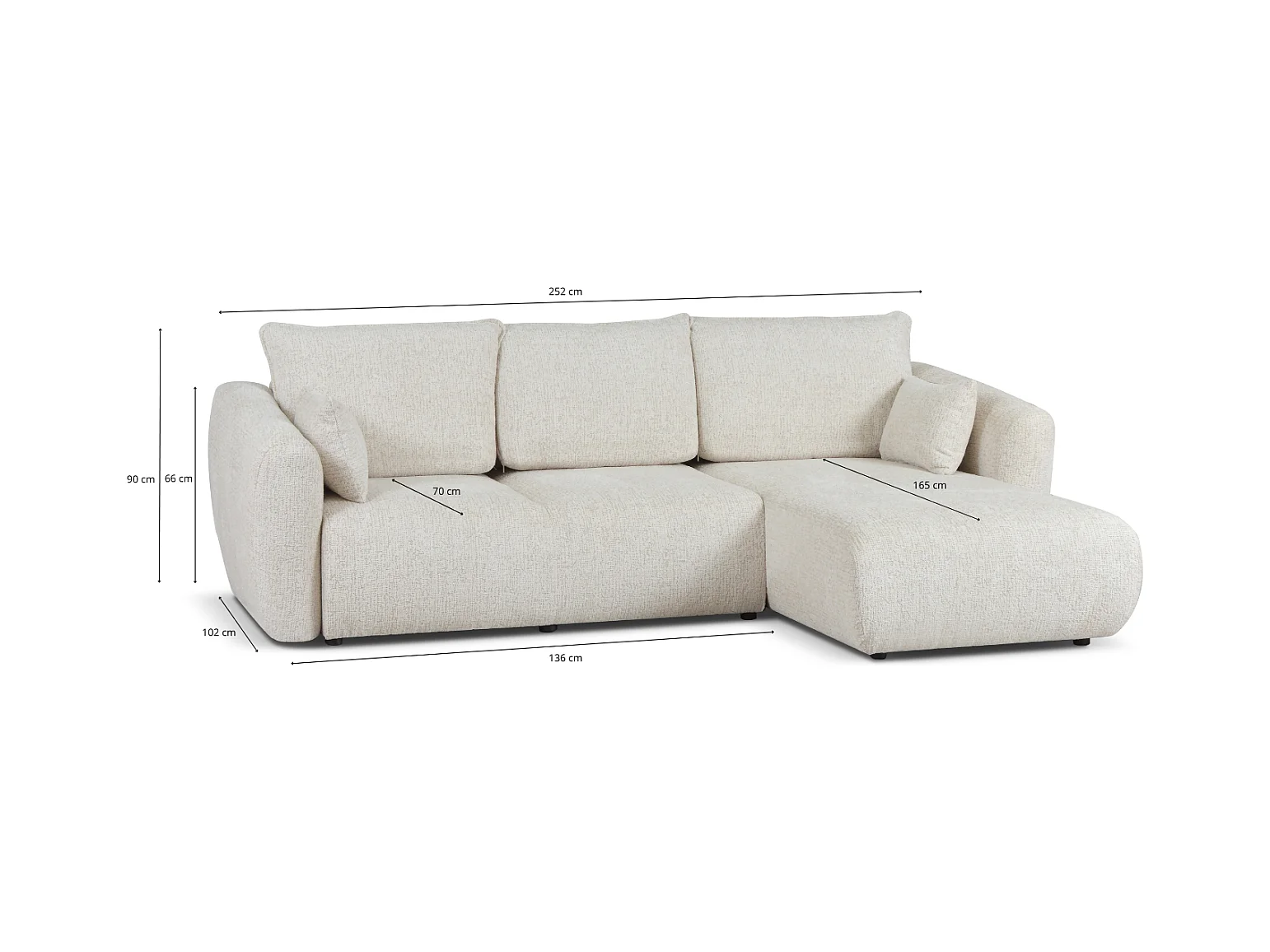 DALLAS – Hoekbank met slaapfunctie links 255x165 cm, stof Raven 24 créme