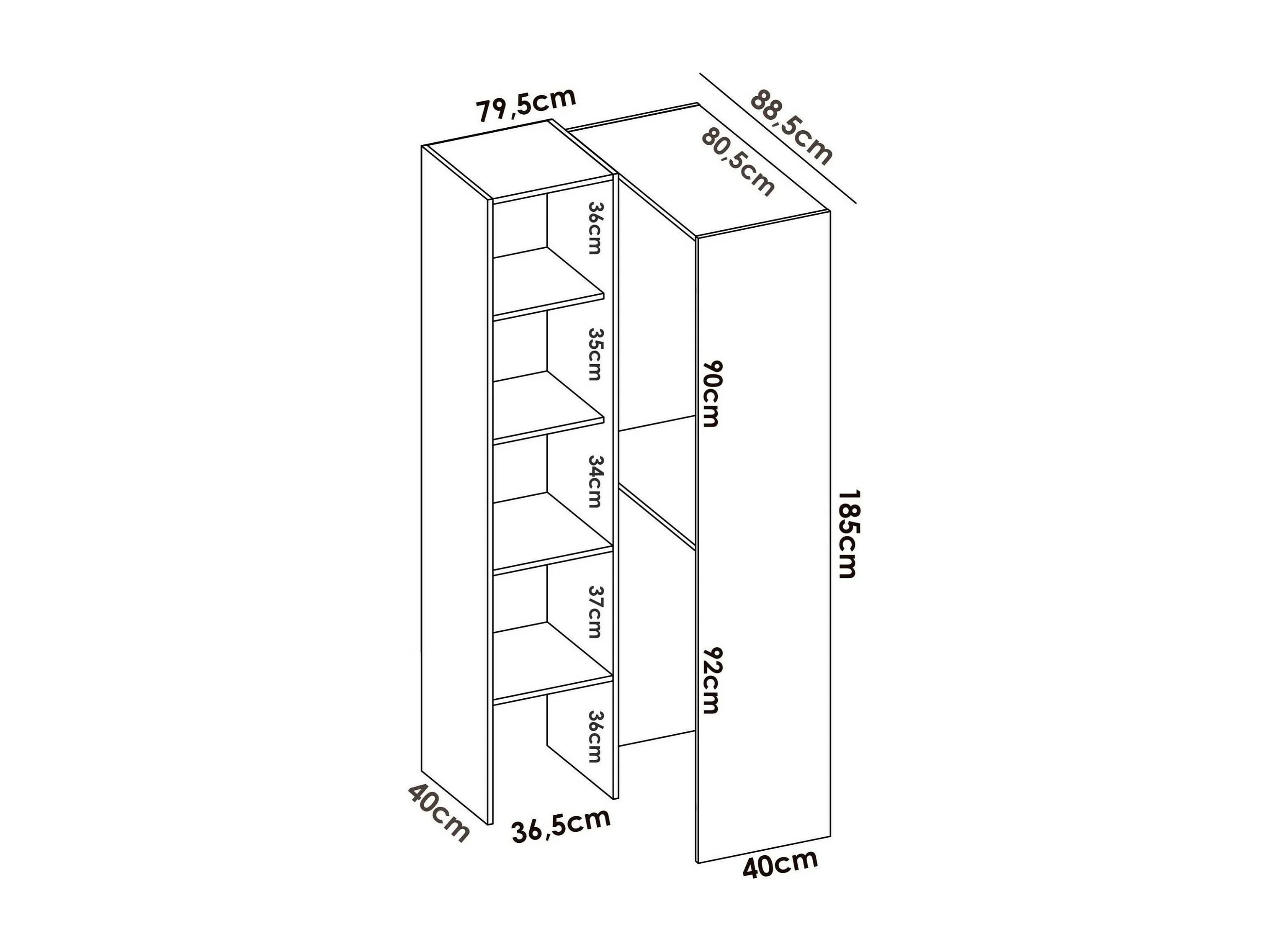 Dalmic kledingkast, Structuur voor hoekinloopkast, Open hoekkleerhanger, 79x88h186 cm, Wit