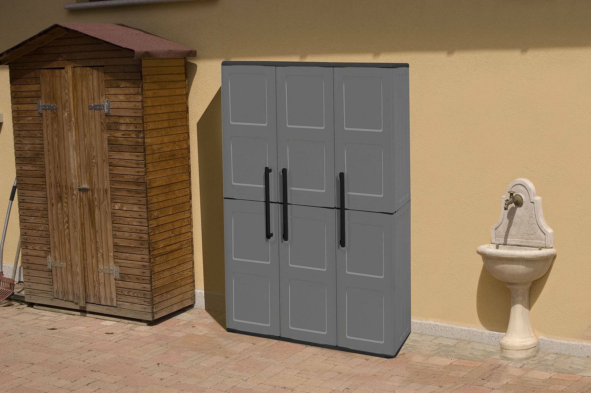 Daltinie buitengarderobe, Buitenkast, Multifunctionele balkongarderobe, 100% Made in Italy, Grijs en Zwart, Vierkante afwerking, 102x37h163 cm