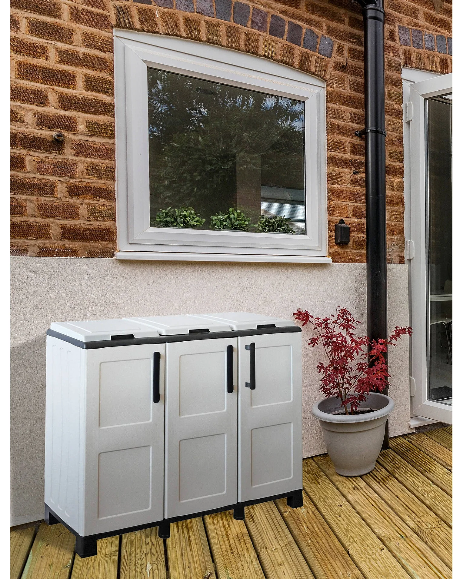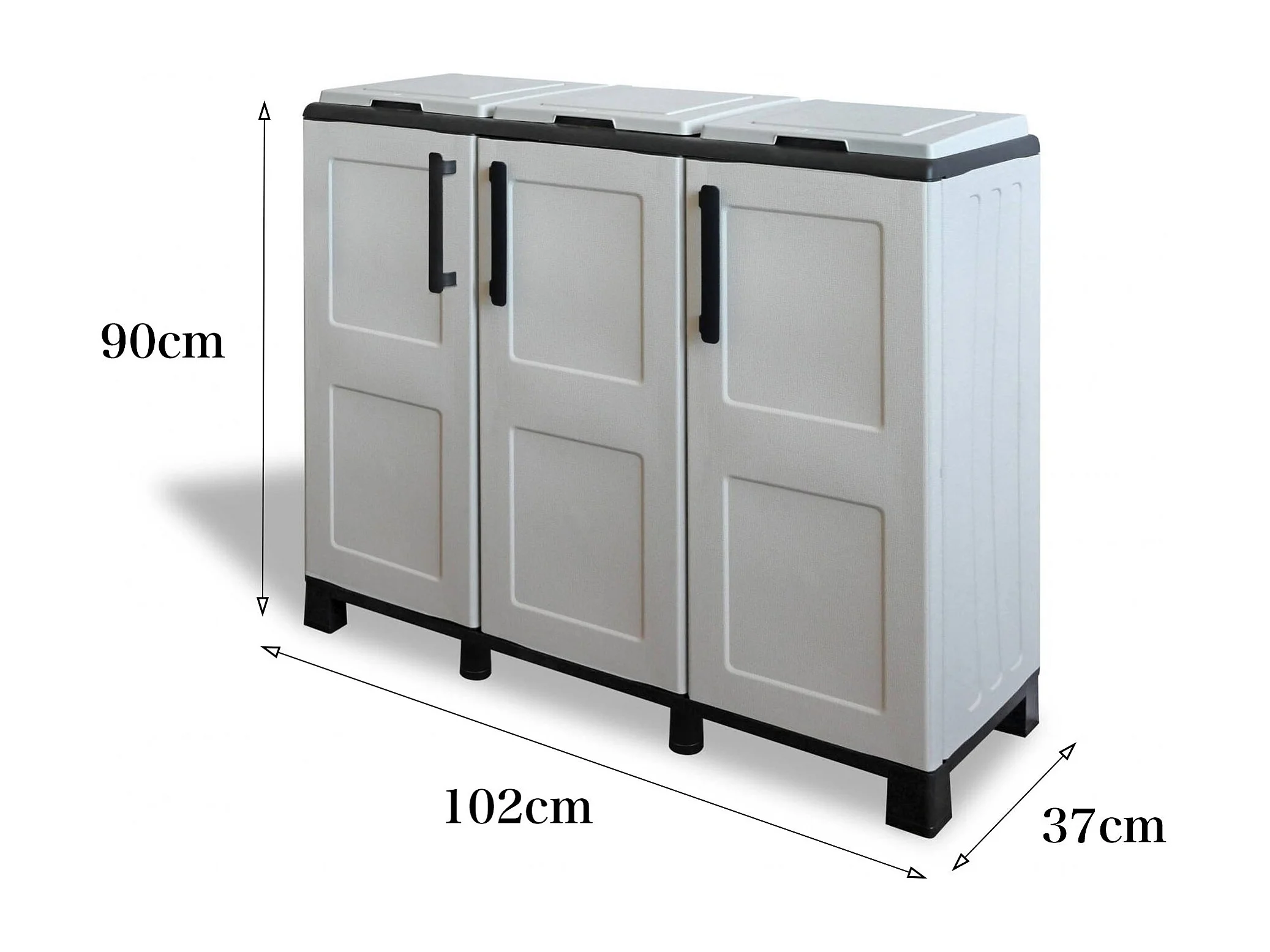 Dambrosett vuilnisbak, Vuilnisbak, Prullenbak, 100% Made in Italy, 3 deuren, 102x37h90 cm, Lichtgrijs en Zwart