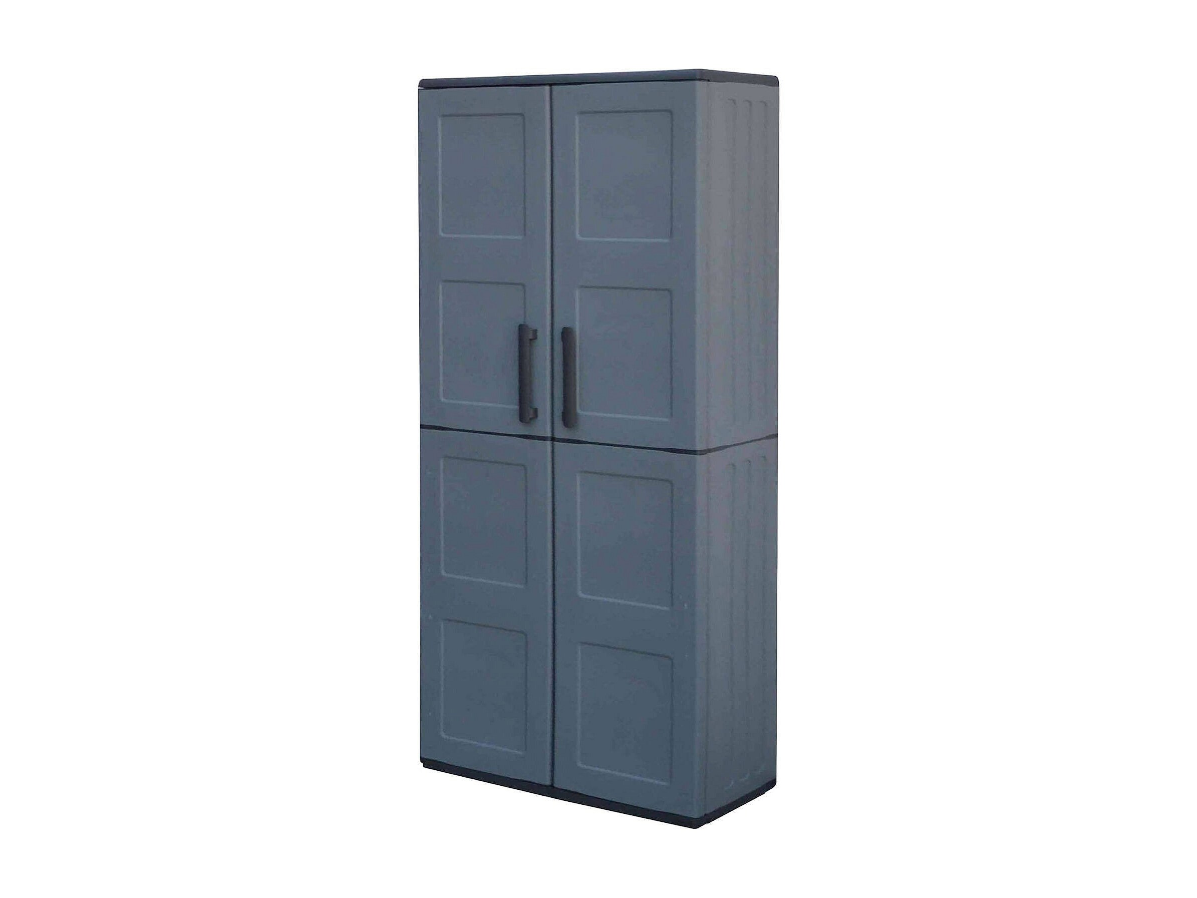 Dargentes buitenkast, Multifunctionele bezemkast, 2-deurs buitenkast, 100% Made in Italy, Vierkante afwerking, 68x37h163 cm, Grijs en Zwart