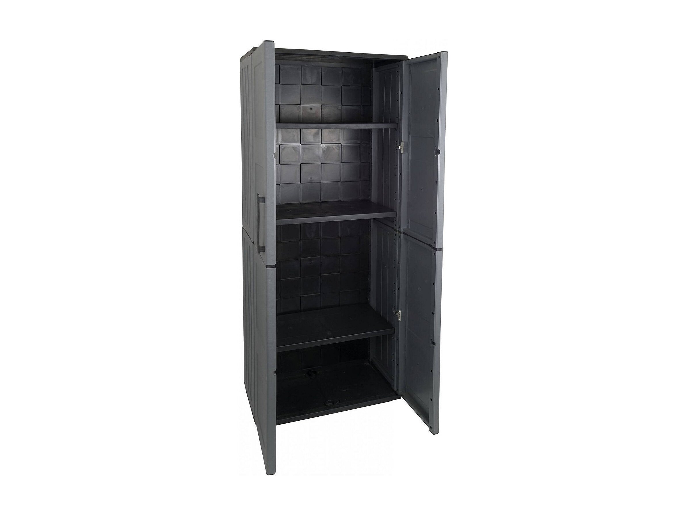 Dbirindell buitengarderobe, multifunctionele balkongarderobe, 2-deurs buitenkast, 100% gemaakt erinAly, 68x37h90 cm, Lichtgrijs & Zwart, Geruite afwerking