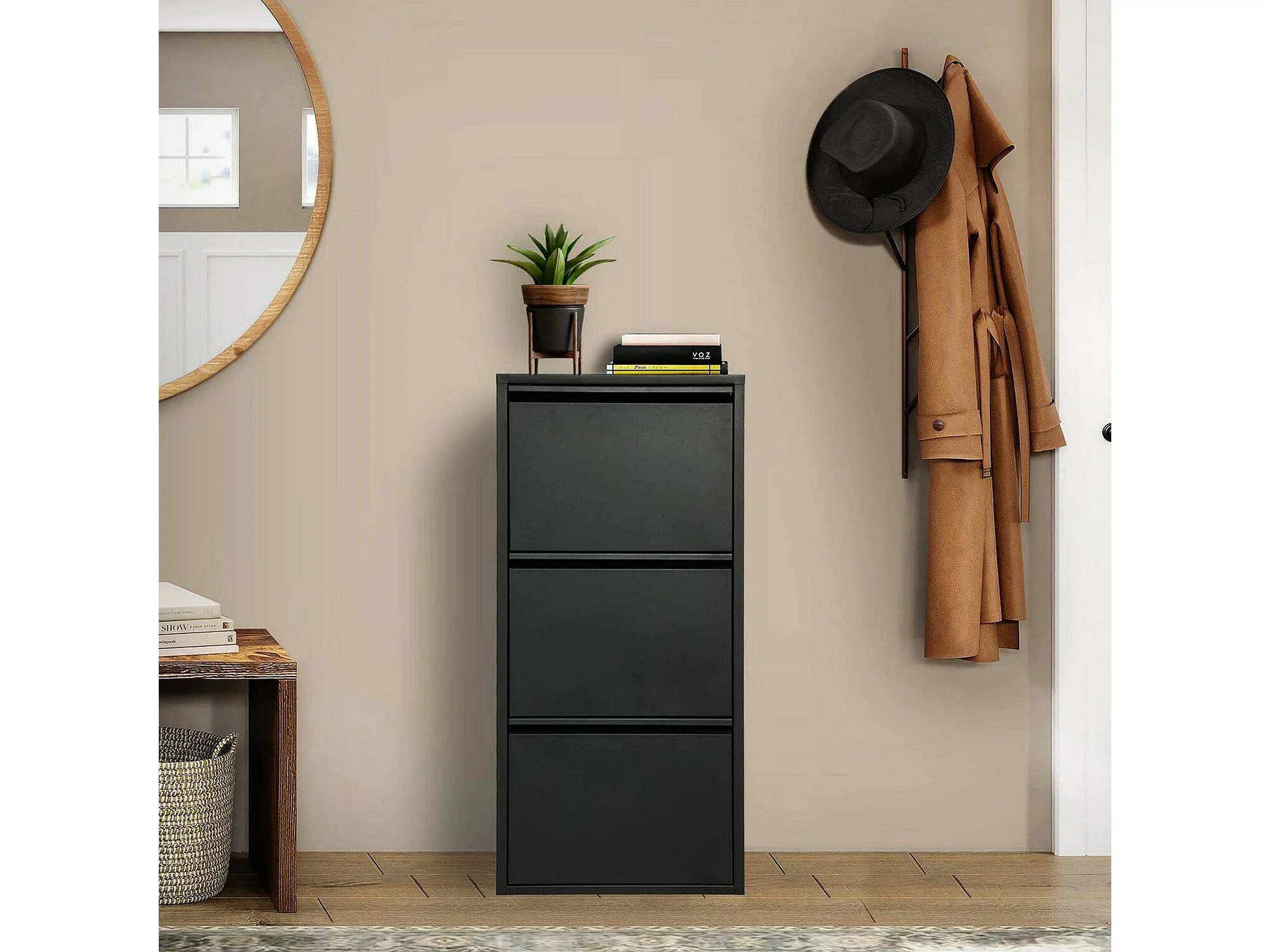 Danacleri Schoenenrek, Metalen Schoenenkast, Multifunctionele Entreekast, Schoeiselkast, 50x15h104 cm, Zwart