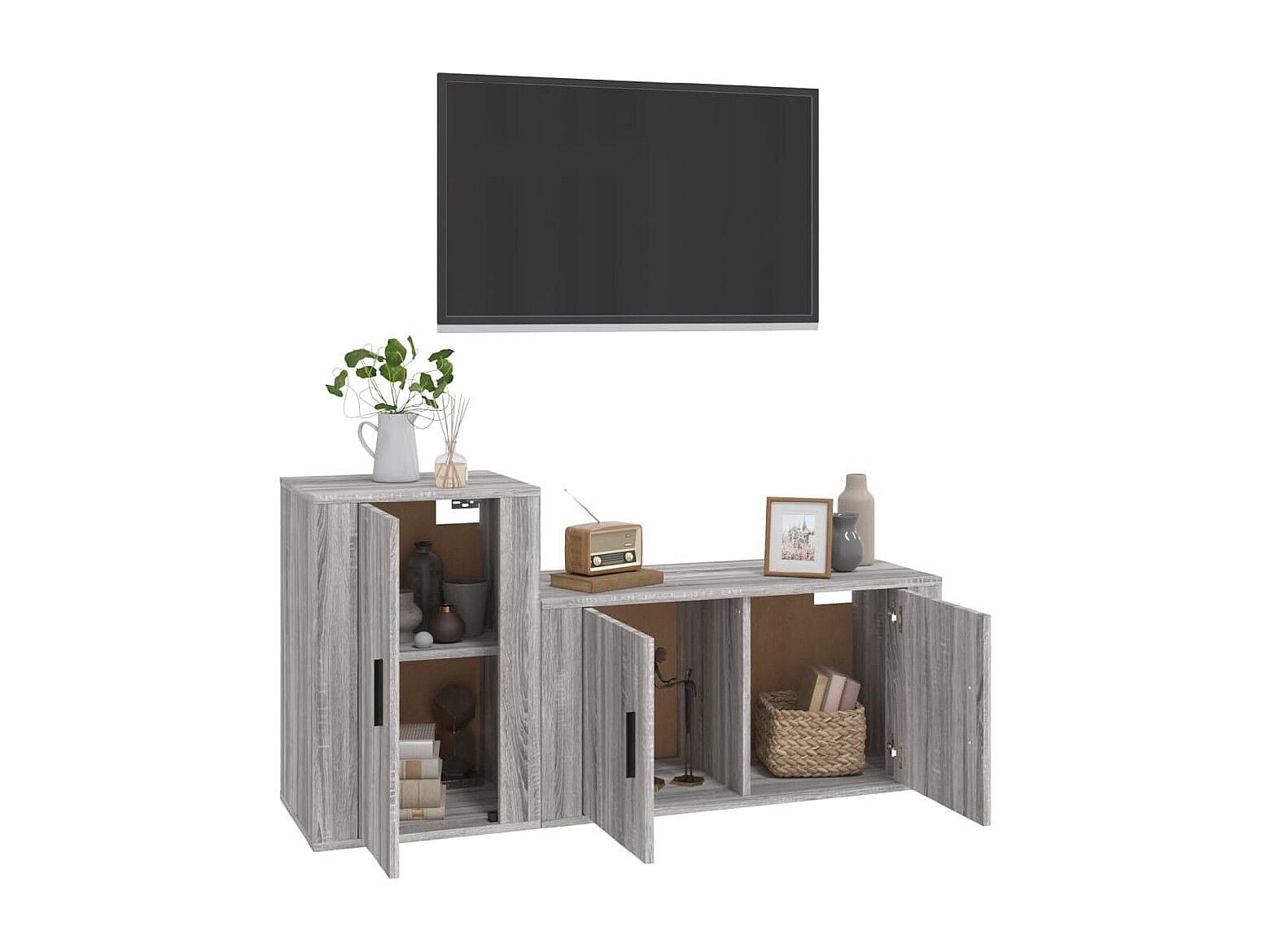 Daniela 2-delige Tv-meubelset bewerkt hout grijs sonoma eikenkleurig