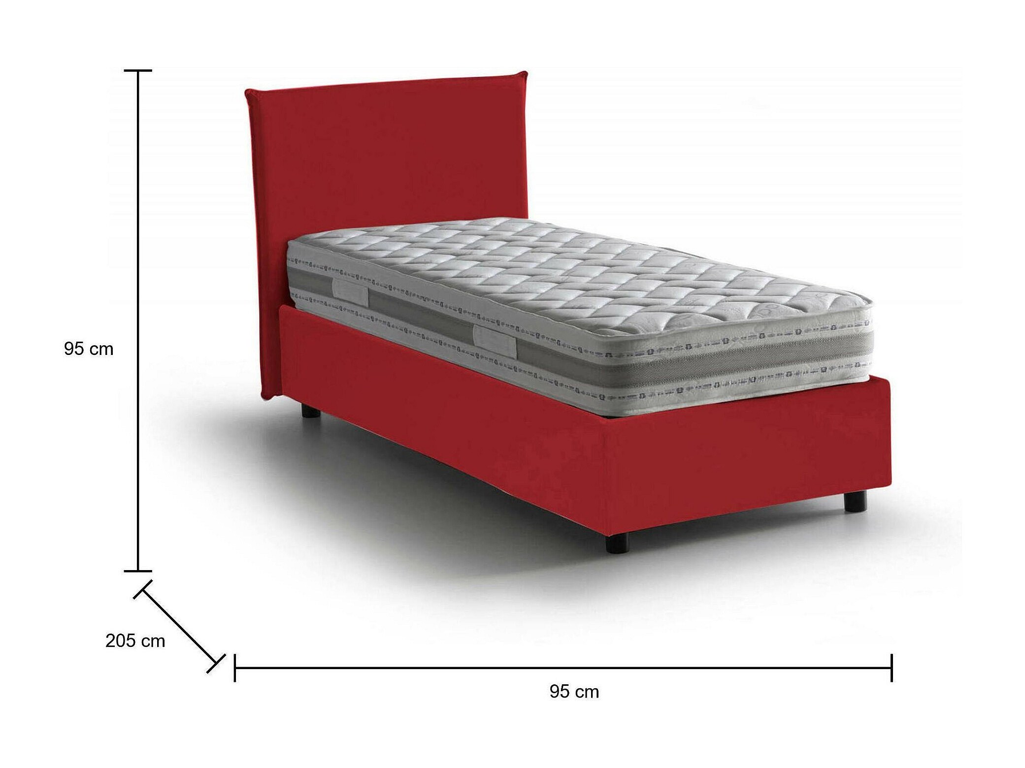 Daugell eenpersoonsbed, Opbergbed met stoffen bekleding, 100% Made in Italy, Zijopening, inclusief matras van 80x190 cm, Rood