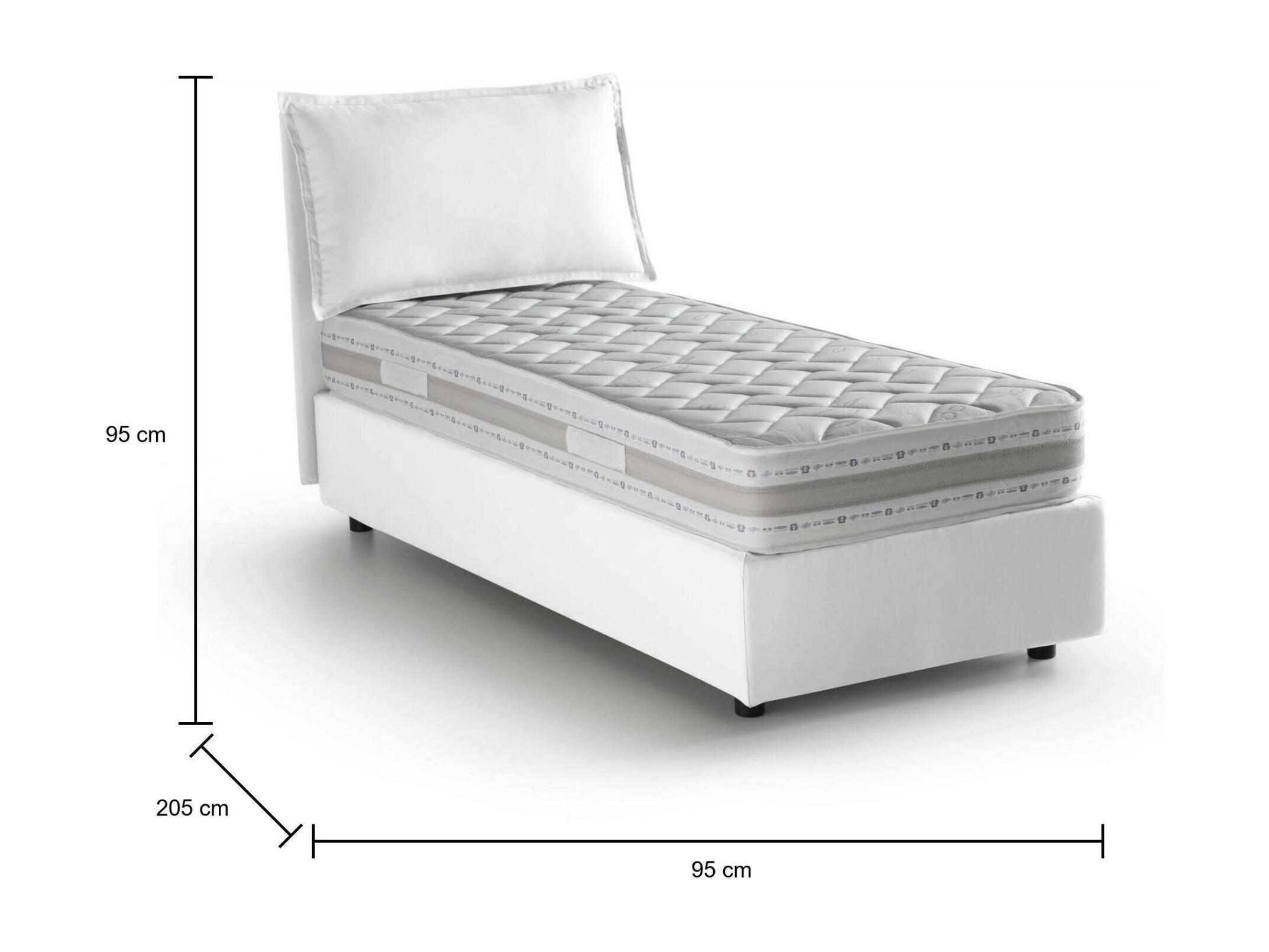Diovin eenpersoonsbed, Opbergbed met eco-lederen bekleding, 100% Made in Italy, Opening aan de voorkant, geschikt voor matras van 80x190 cm, Wit