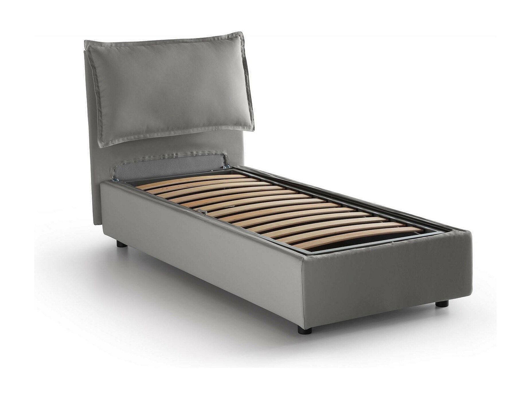 Danton eenpersoonsbed, Opbergbed met eco-lederen bekleding, 100% Made in Italy, Opening aan de voorzijde, geschikt voor matras 80x190 cm, duifgrijs