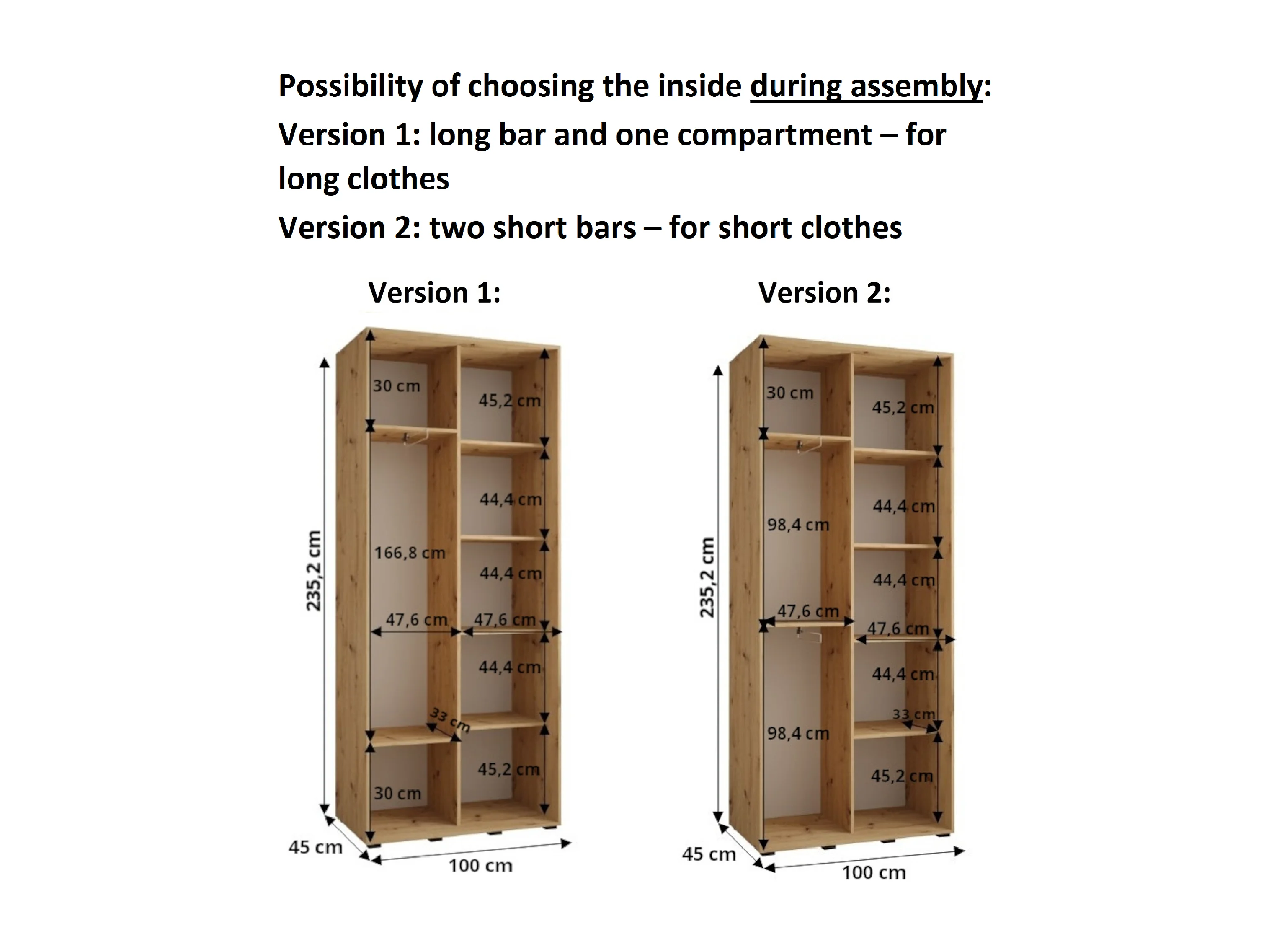 DAVOS 1 KLEDINGKAST MET SCHUIFDEUREN 235,2/100/45 2 deuren (Wit/Artisan/Zwart)