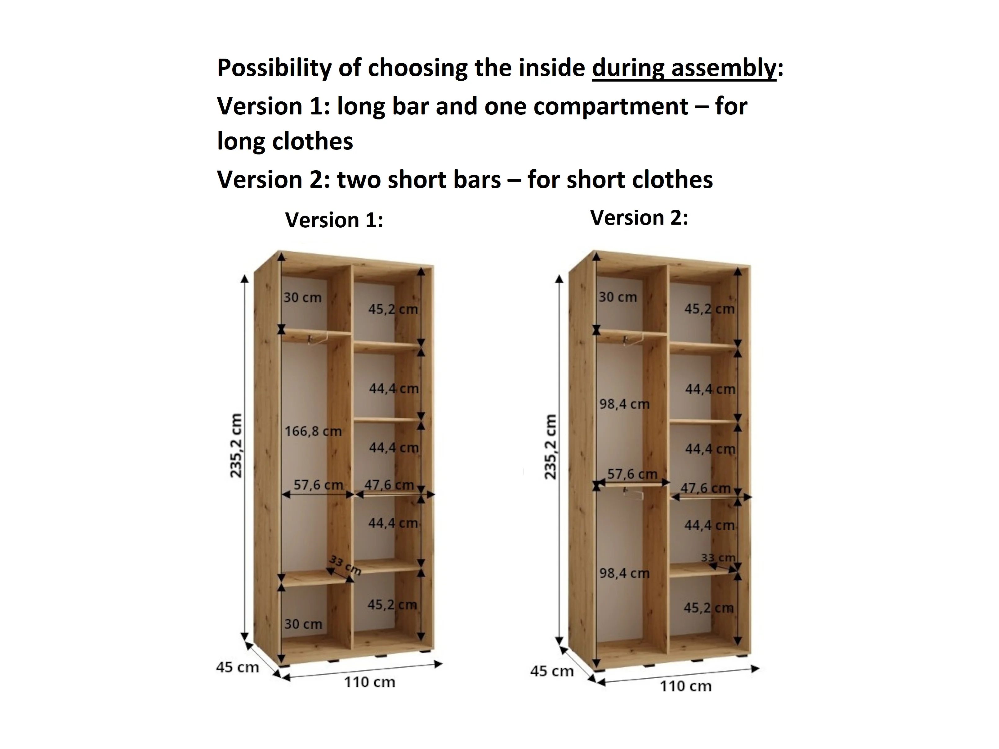 DAVOS 5 KLEDINGKAST MET SCHUIFDEUREN 235,2/110/45 2 deuren (Zwart/Wit/Zwart)