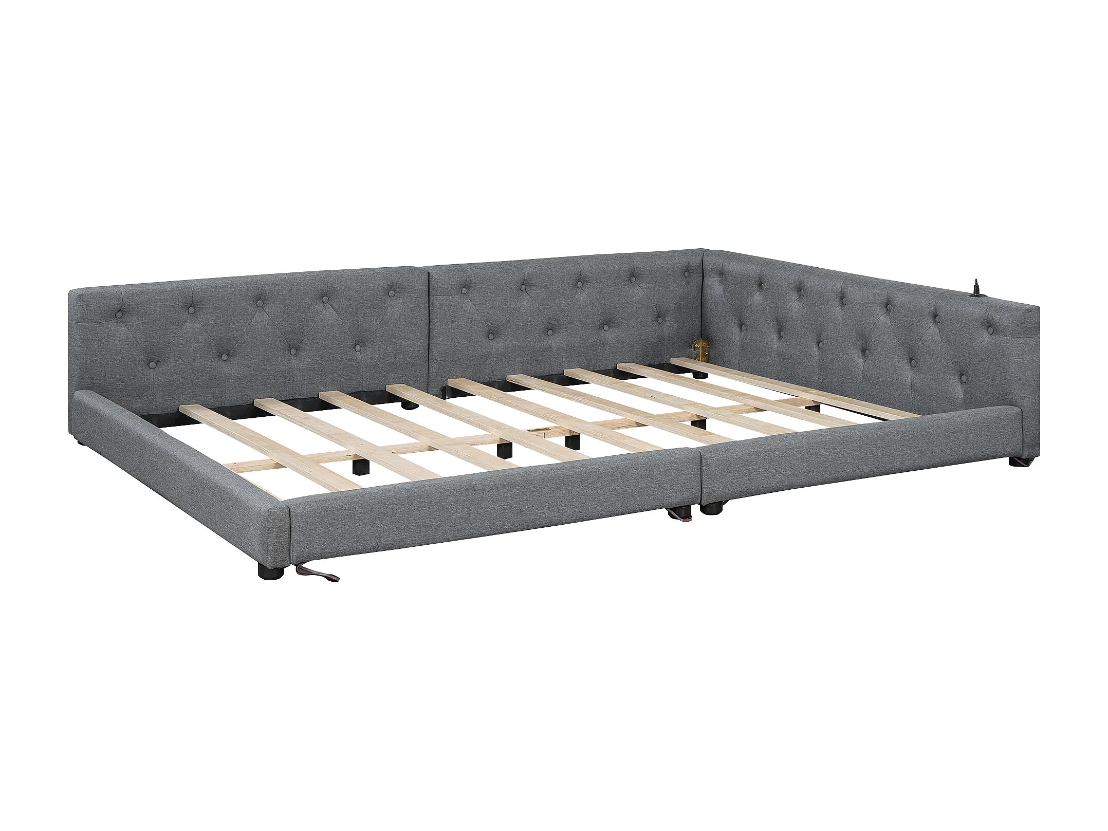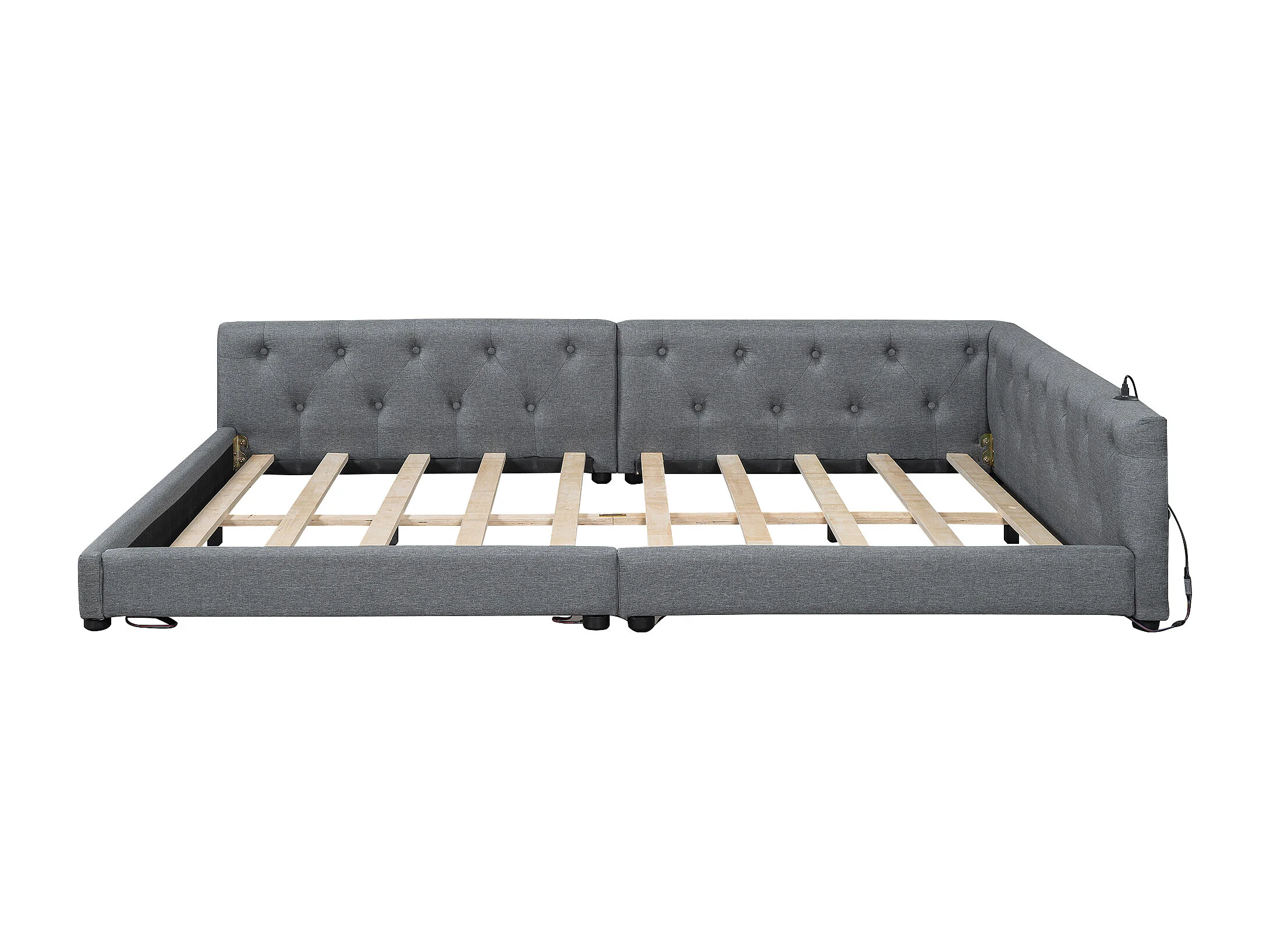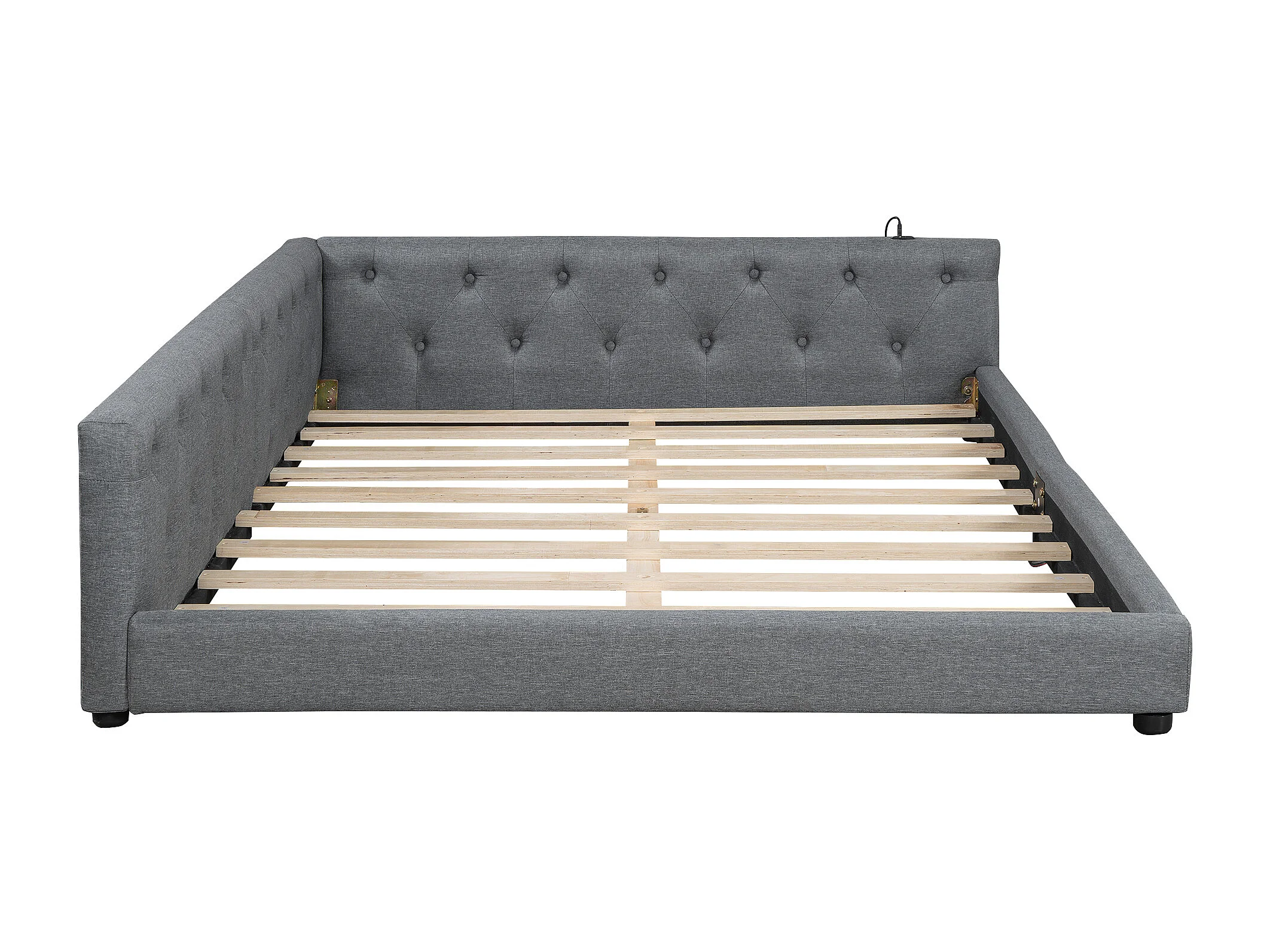 Daybed 140 x 200 cm met LED-verlichting, USB- en Type-C-aansluiting - Volwassenenbed in grijs linnen