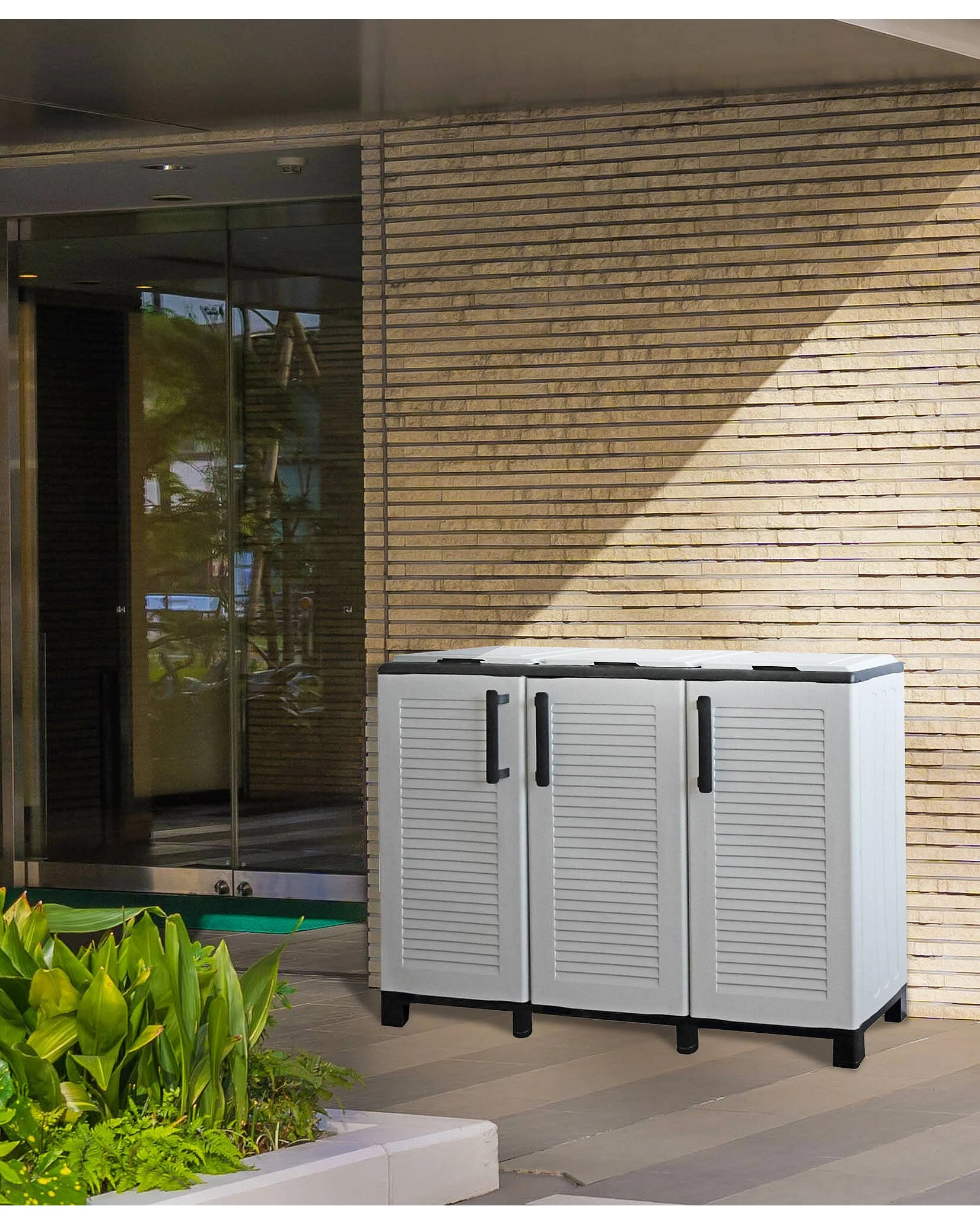 Dbacchett vuilnisbak, afvalbak voorR prullenbak, Aparte opvangbak, 100% Made in Italy, 102x37h90 cm, Lichtgrijs en Zwart