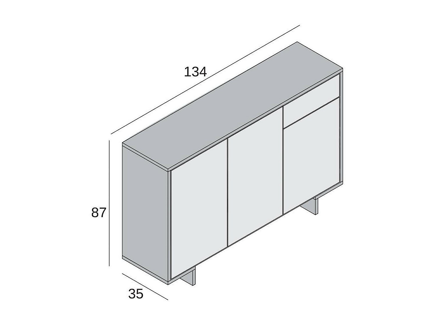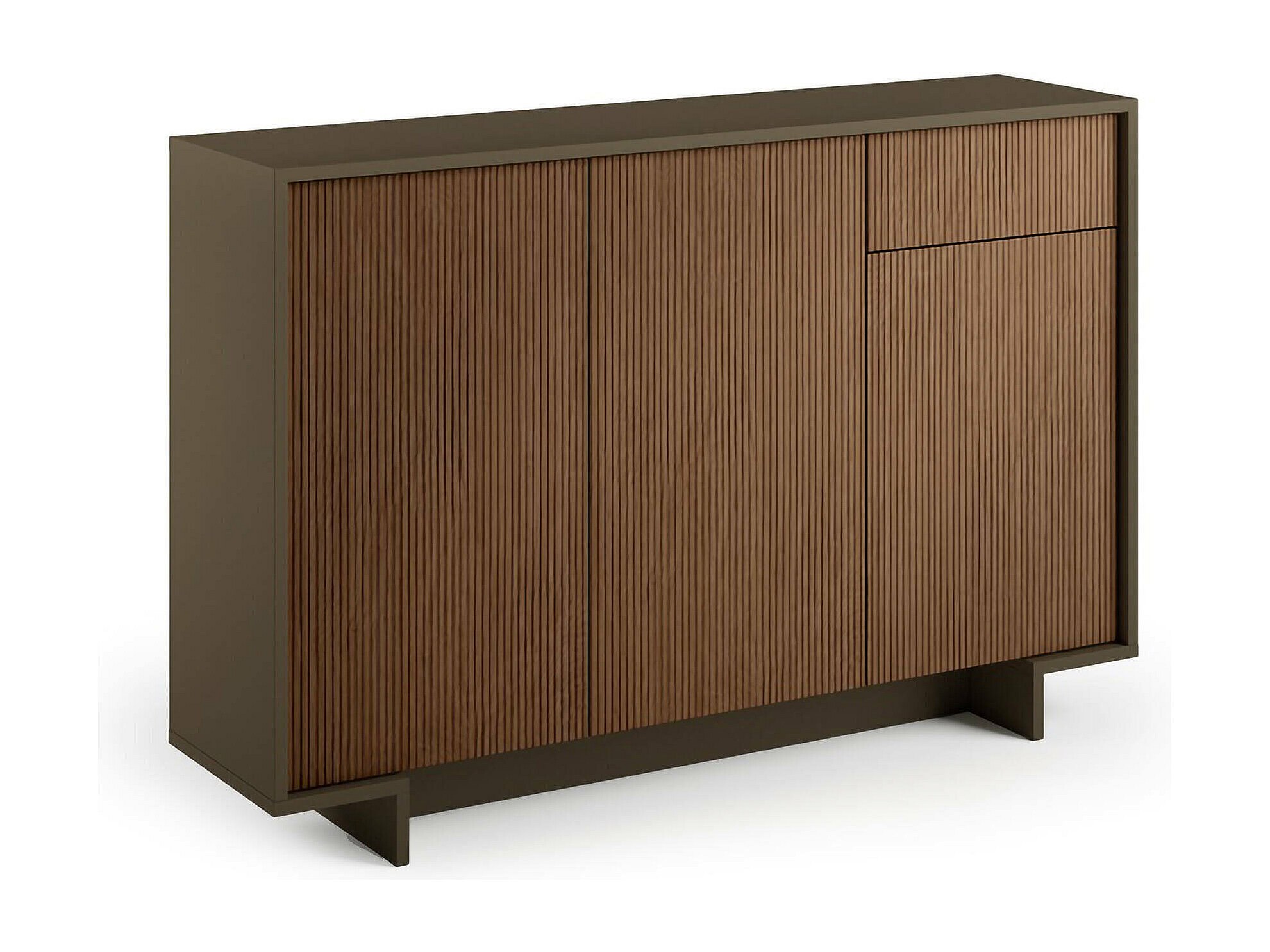 Dbakayok dressoir, Woonkamer, Woonkamerbuffet met 3 deuren en 1 lade, 100% Made in Italy, 134x35h87 cm, Bruin en Walnoot
