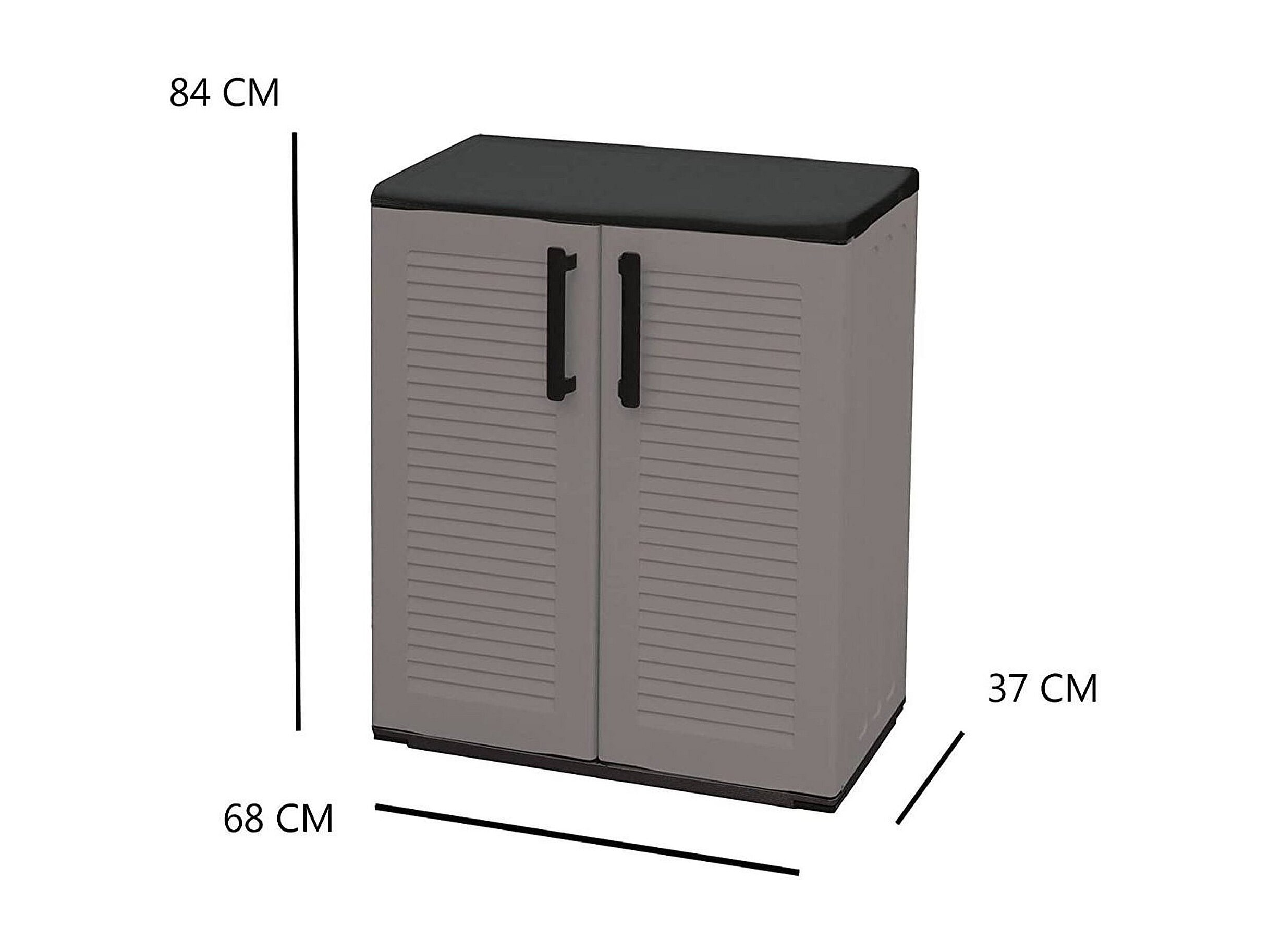 Dbirindell buitengarderobe, Multius balkongarderobeO, Buitenkast 2 deuren, 100% Made in Italy, 68x37h90 cm, Lichtgrijs en Zwart, Gestreepte afwerking