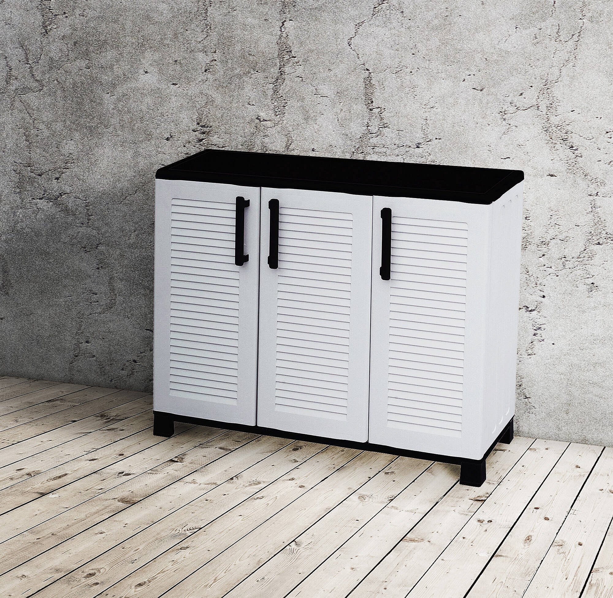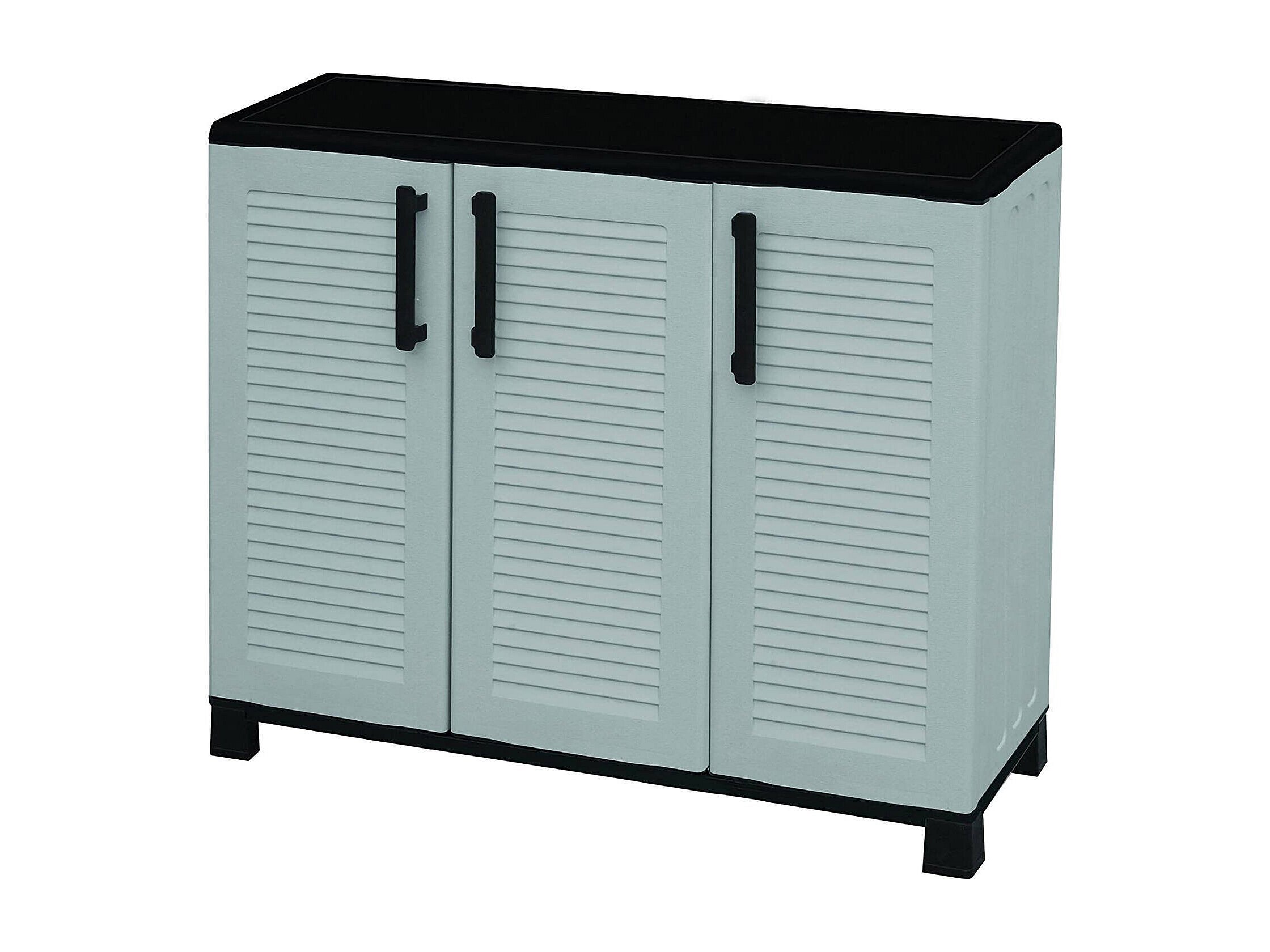Dbelpann buitengarderobe, Multifunctionele balkongarderobe, 3-deurs buitenkast, 100% Made in Italy, 102x37h90 cM, lichtgrijs en zwart, stripafwerking
