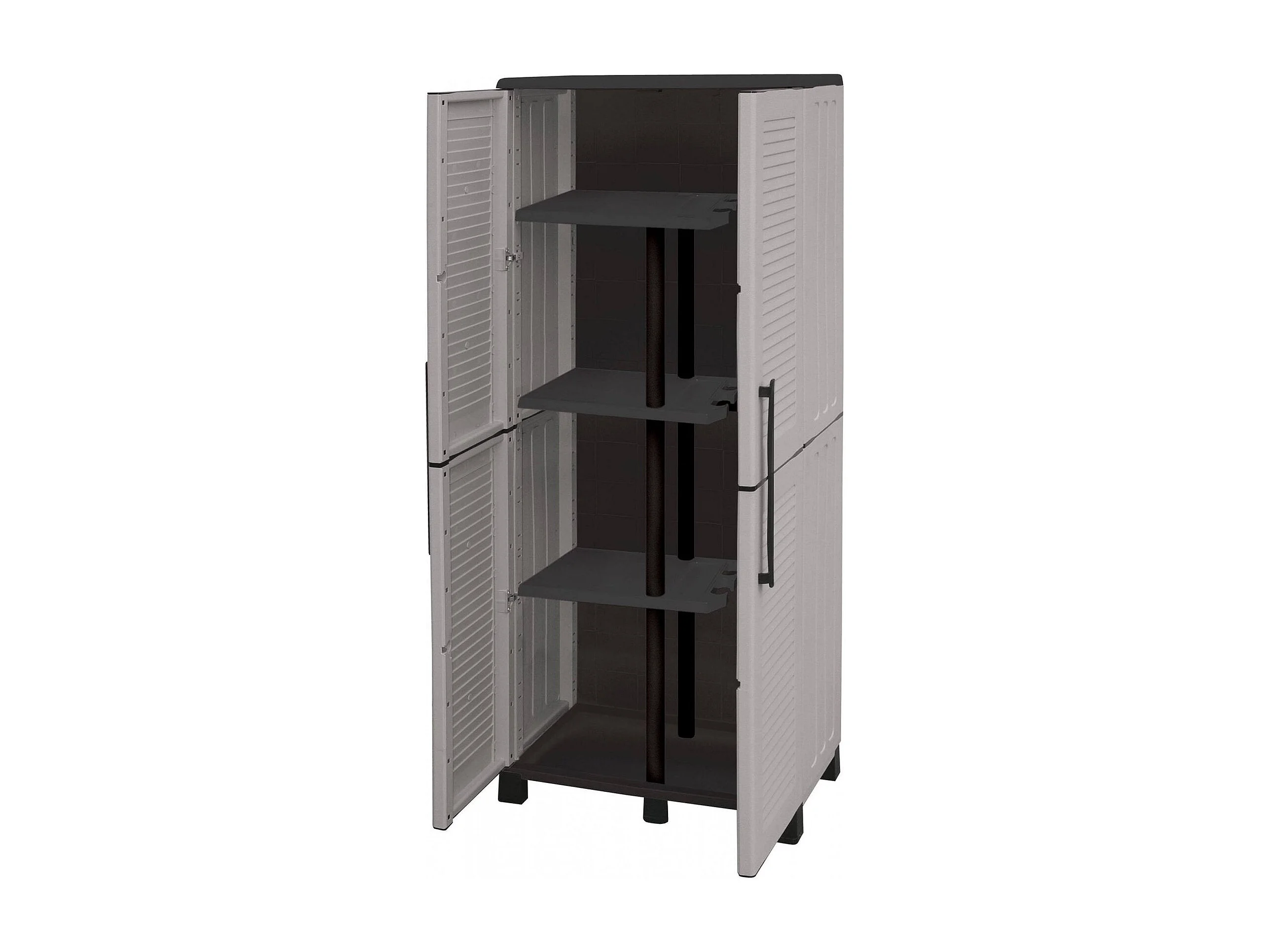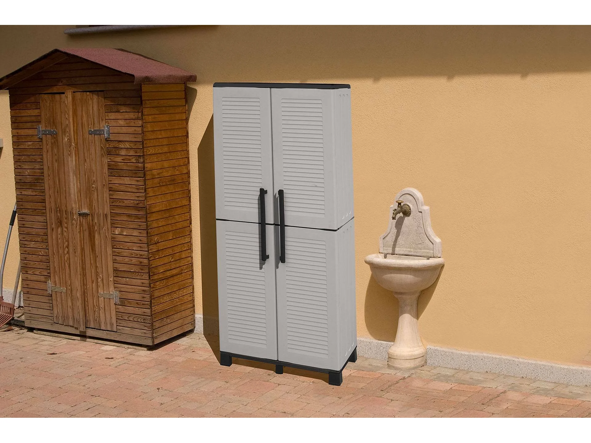 Dbettell buitengarderobe, Garderobe doorTa scope, Buitenkast 2 deuren, 100% Made in Italy, 68x37h169 cm, Lichtgrijs en Zwart, Gestreepte afwerking