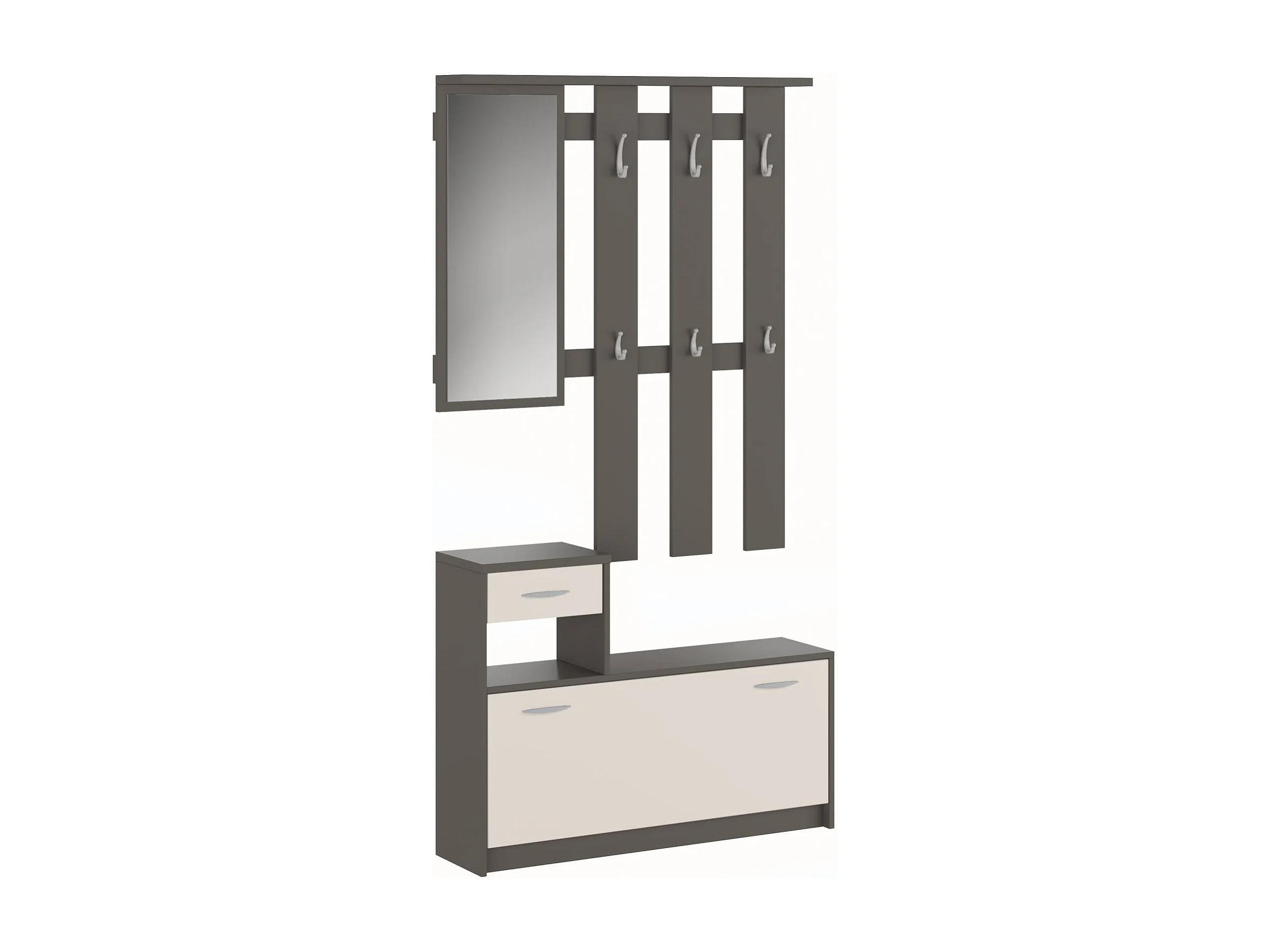 Dbiagin entreemeubilair, Moderne entree met spiegel, Kast met schoenenrek, Multifunctionele kast, 100x25h180 cm, Wit en Antraciet