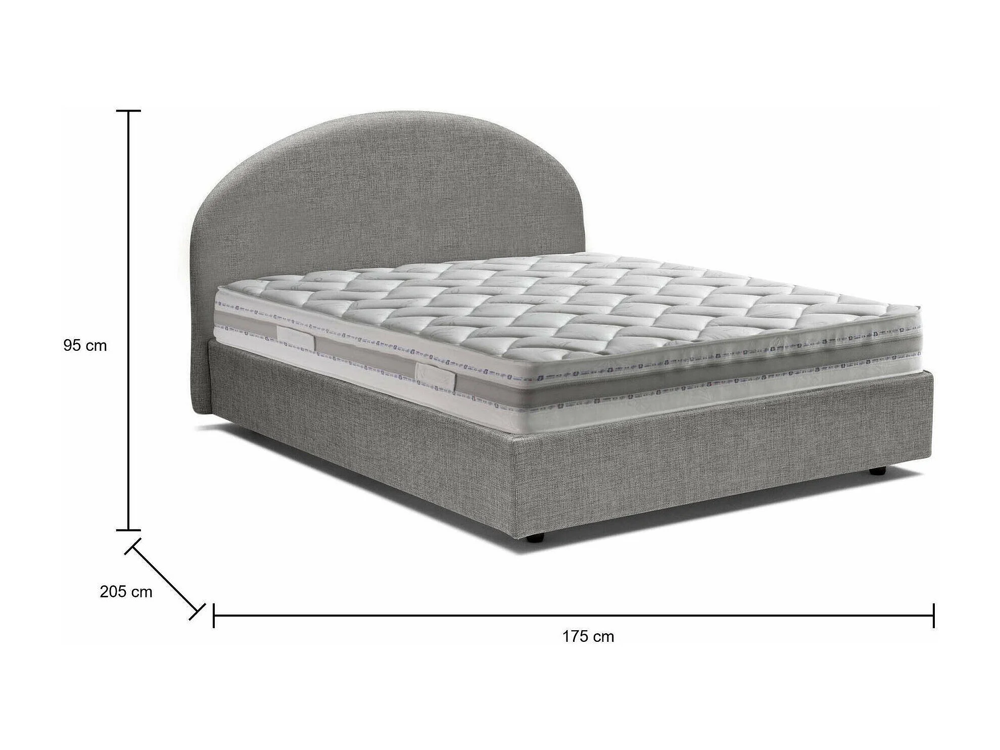 Dbonett tweepersoonsbed, Opbergbed met stoffen bekleding, 100% Made in Italy, Opening aan de voorkant, inclusief matras 160x190 cm, Grijs