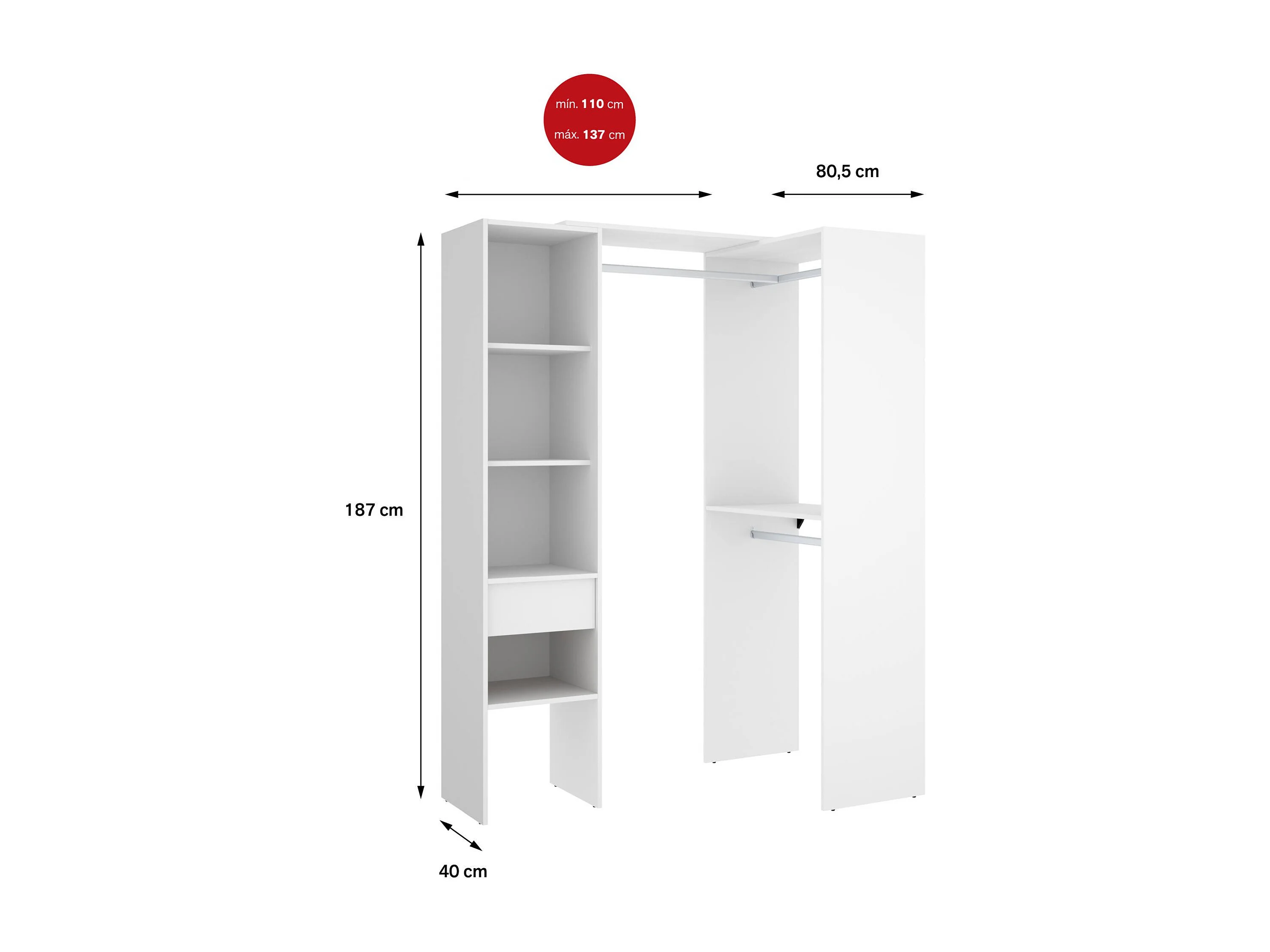 Dburn grote kledingkast, Slaapkamermeubel, Inloopkast, Kledingkast, 98x42 h187 cm, Wit