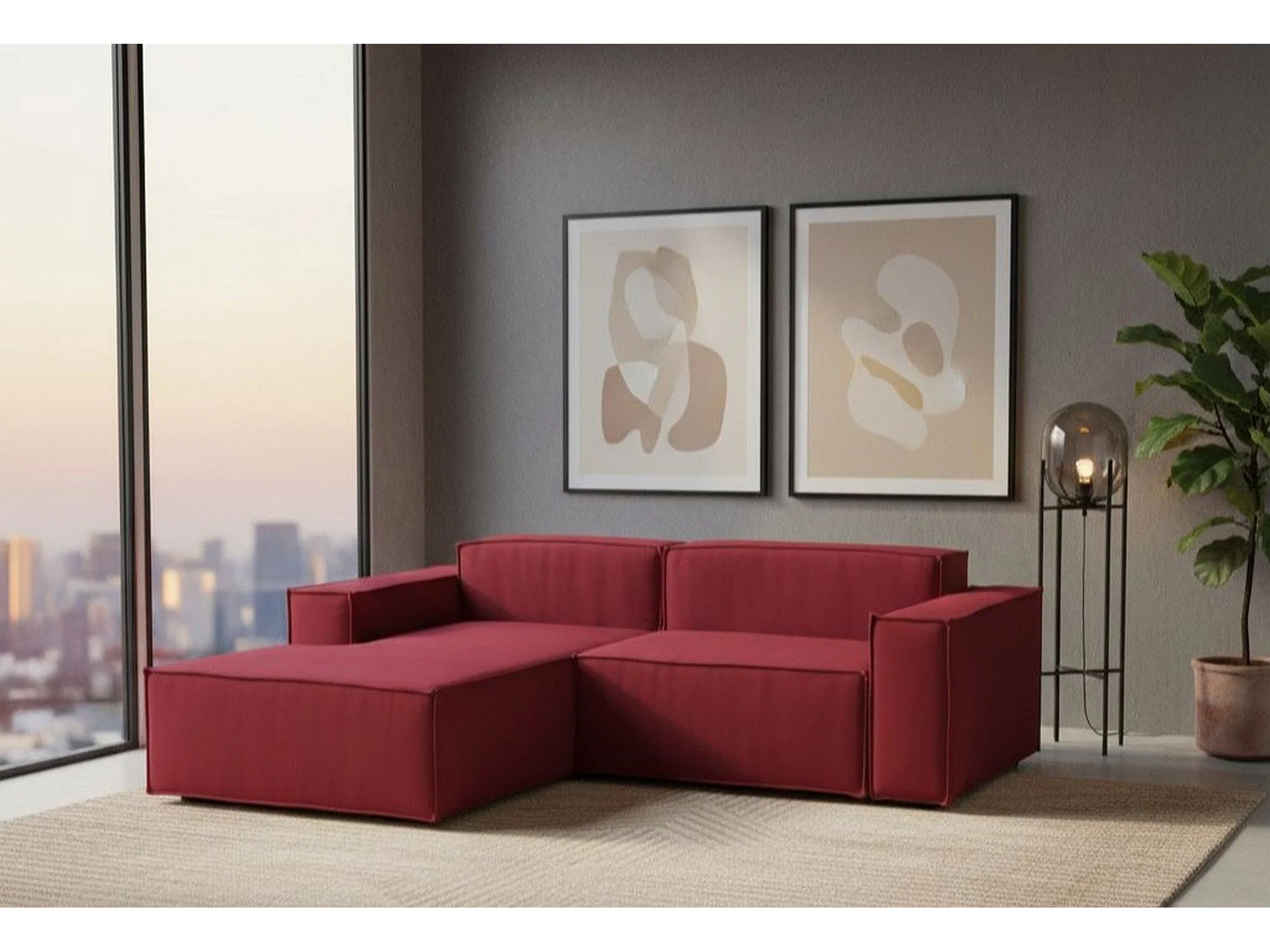 Dcagnan vaste bank, Grote 2-zits modulaire bank met linkerschiereiland, 100% Made in Italy, Moderne stoffen bank, 240x170h70 cm, Rood
